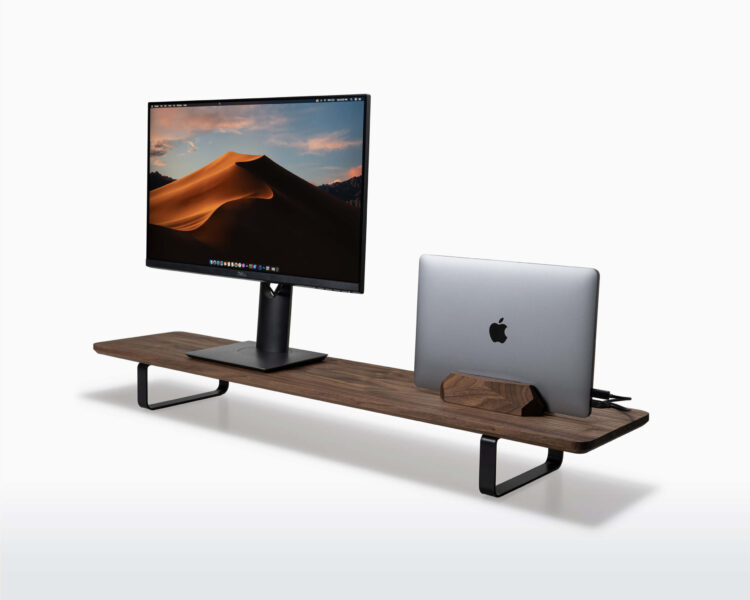 Het minimalistische ontwerp is gemaakt van massief Amerikaans walnoot hout en is bedekt met ecologische oliën. Amerikaans walnoot hout is een van de mooiste en meest prestigieuze houtsoorten. De interessante houtnerf en donkere kleur brengen elegantie in je kamer. Dankzij de stevige beugels kan hij tot 100 kg aan items dragen! De dubbele bureau stand biedt extra bergruimte voor je bureauaccessoires en kan hij een of twee monitoren ondersteunen. Met deze monitor stand zit je altijd op de juiste hoogte om urenlang te werken zonder nek- of rugklachten. De stalen poten zorgen voor een stevige basis – bovendien zijn ze krasbestendig! Dit maakt het de perfecte monitor stand voor thuis of op kantoor.