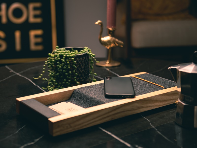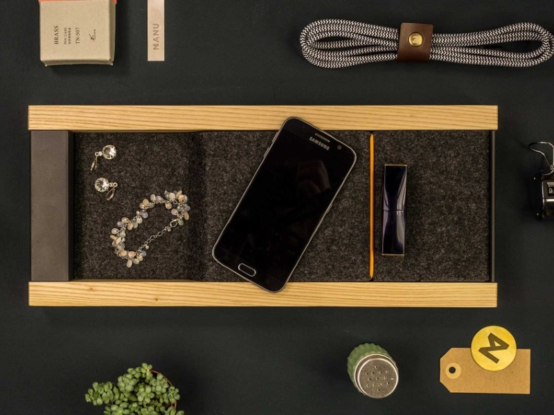 - Vervaardigd van massief essenhout, gepoedercoat staal en vilt