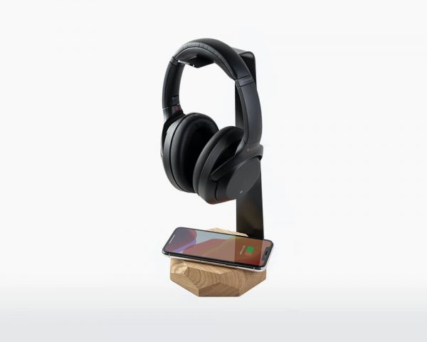 Een geweldige gadget voor techlovers! De 2-in-1 hoofdtelefoonstandaard is gemaakt van massief staal met een unieke geometrische eikenhouten voet. Ruim uw bureau op met deze gsm-standaard en geef uw werkruimte een overzichtelijke uitstraling. Hang je koptelefoon op en laad tegelijkertijd je telefoon op met de 10W houten draadloze oplader.