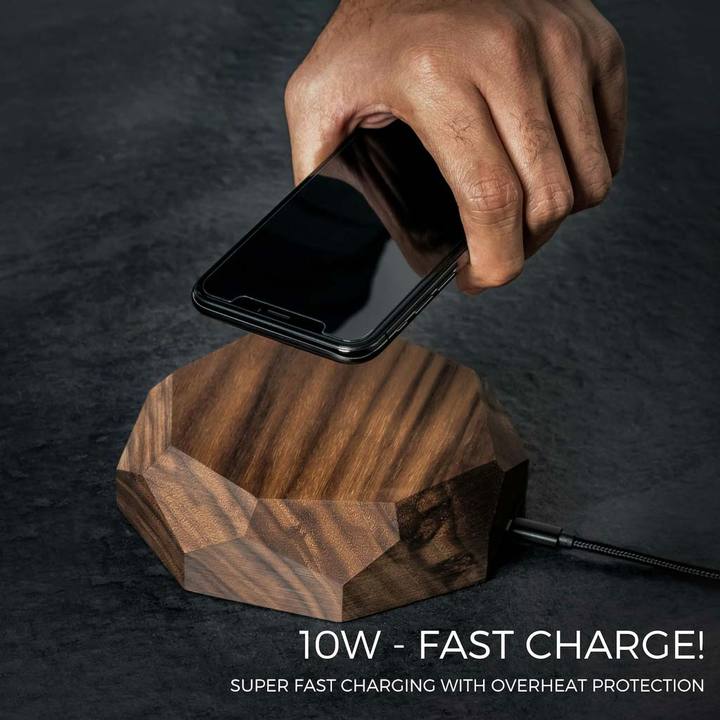 Deze prachtige houten oplader, voorzien van de Qi technologie (draadloos laden), zorgt ervoor dat je telefoon razendsnel weer is opgeladen. Met 10W vermogen schiet het ook wel op natuurlijk.