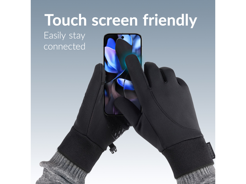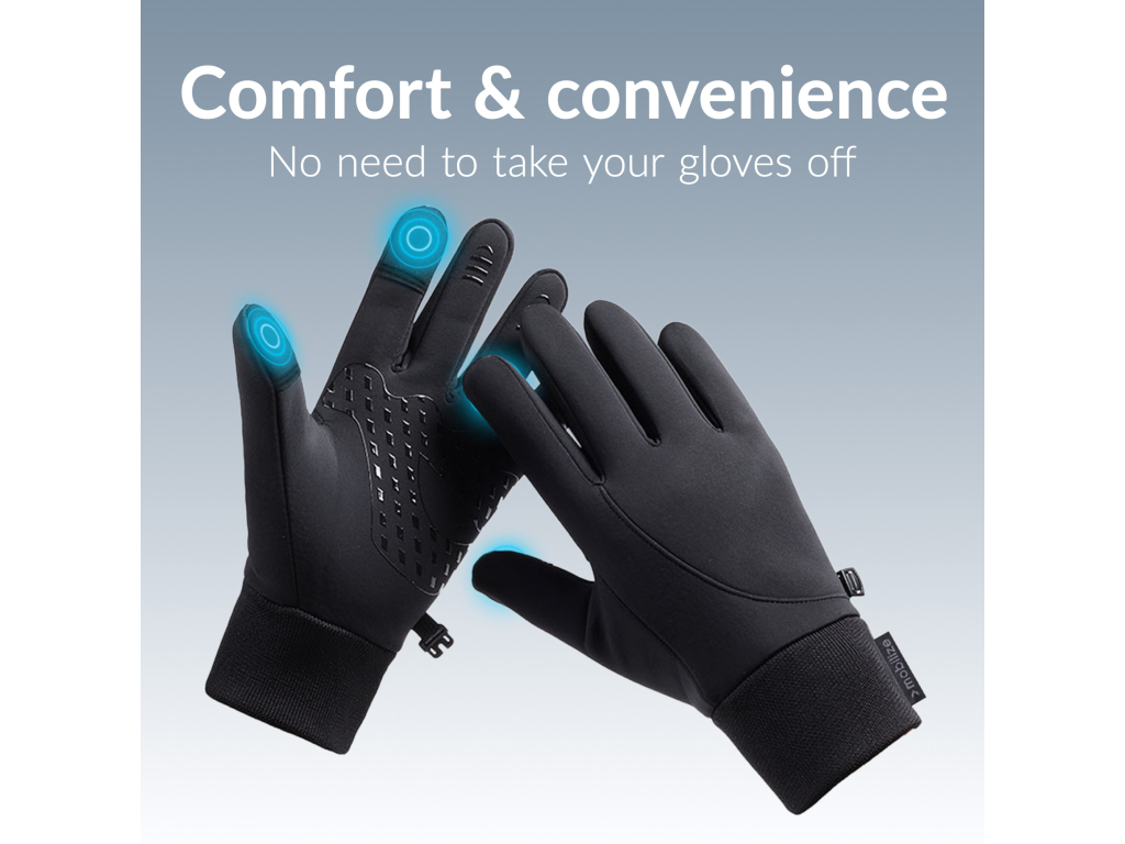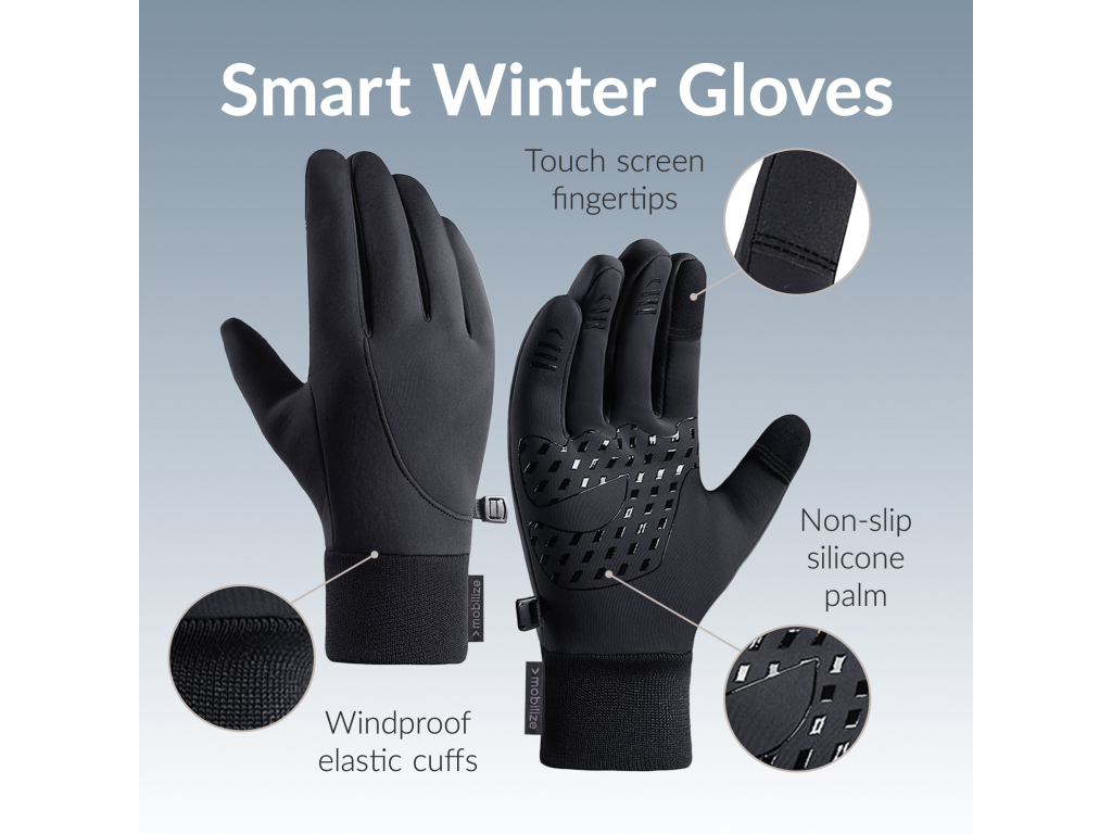 Met de Mobilize Smart Winter Gloves ben je altijd klaar voor de winter. Of het nu regent, sneeuwt of vriest, je blijft verbonden én beschermd tegen de elementen. Perfect voor dagelijks gebruik tijdens de koudere seizoenen! Deze handschoenen combineren stijl en functionaliteit om capacitieve touchscreens eenvoudig te bedienen, zelfs tijdens de koudste en natste dagen. Of je nu een smartphone, tablet of ander touchscreen gebruikt, je behoudt volledige controle zonder je handschoenen uit te hoeven doen.