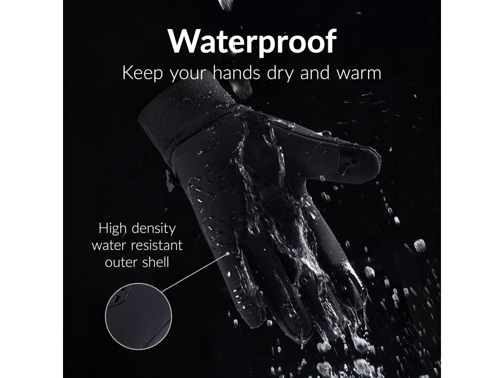 De handschoenen zijn voorzien van een waterdichte laag, zodat je handen droog blijven, zelfs in regenachtige of sneeuwrijke omstandigheden. Daarnaast zorgen de zachte fleecevoering en elastische winddichte boorden voor optimale warmte en bescherming tegen de elementen.