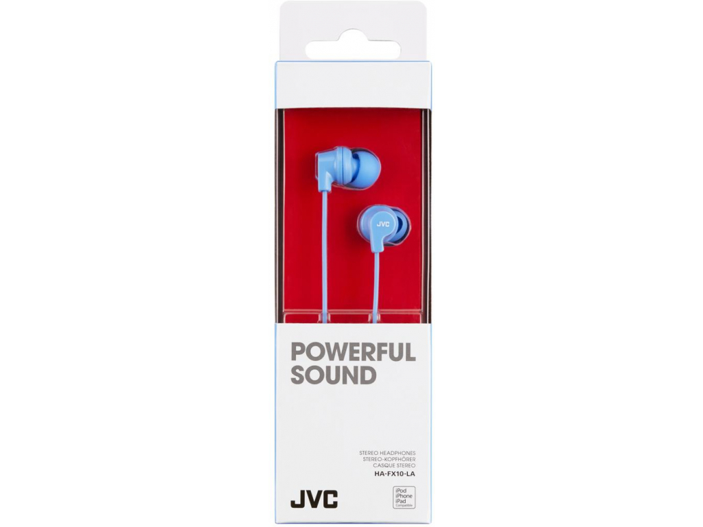 De JVC HA-FX10-LA is een kleurrijke in-ear hoofdtelefoon met een krachtig geluid dankzij de 9 mm neodymium drivers. Hij heeft een 1,2 m gekleurd snoer met compacte L-stekker die iPhone compatibel is. Bijgevoegd zijn siliconen oorstukjes in verschillende formaten.