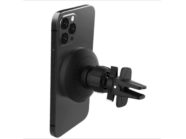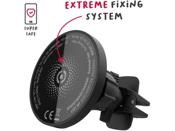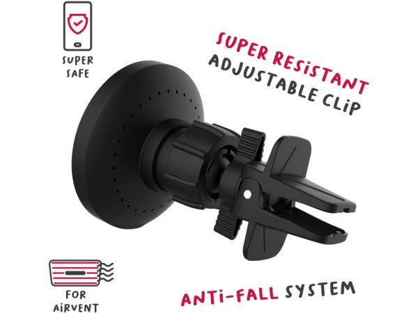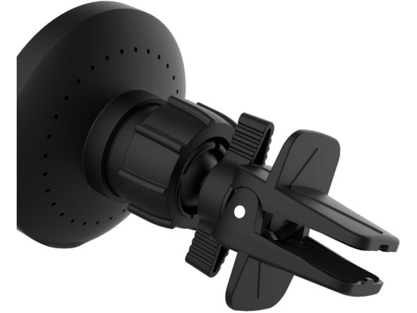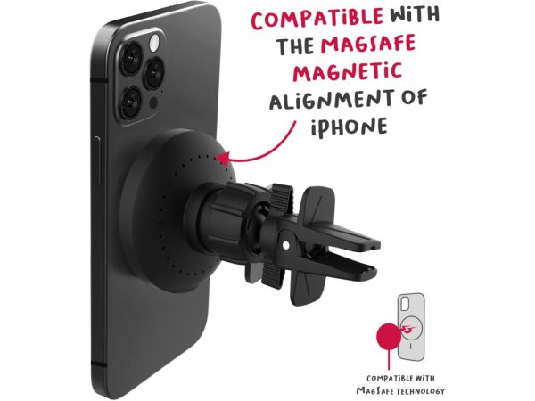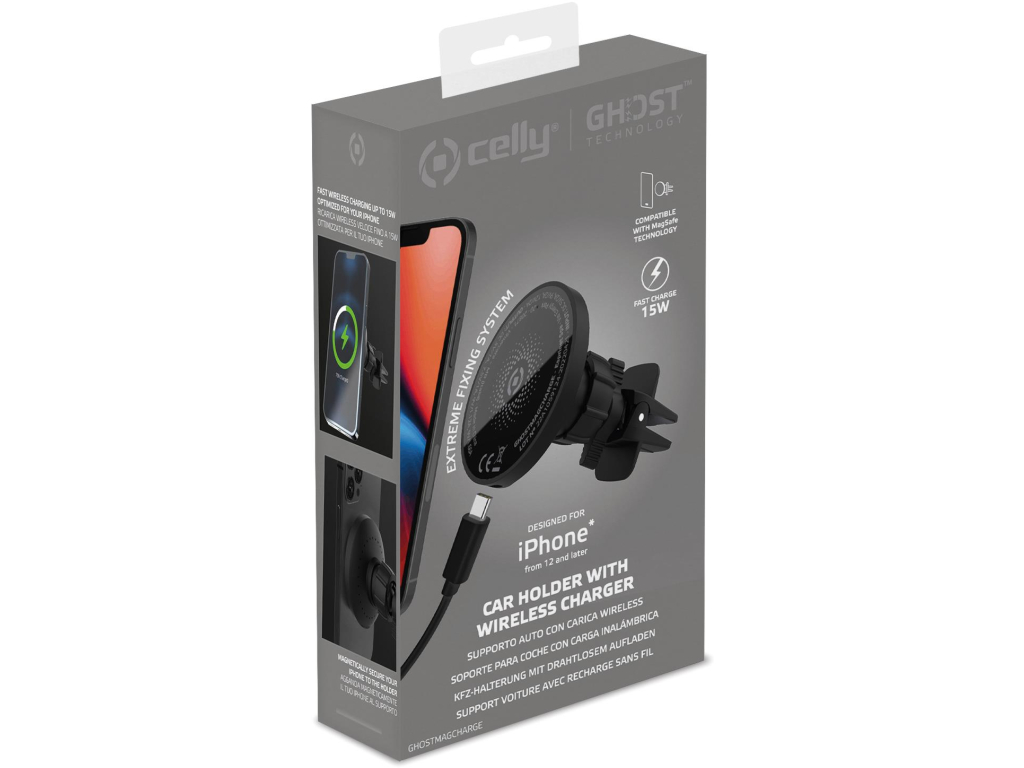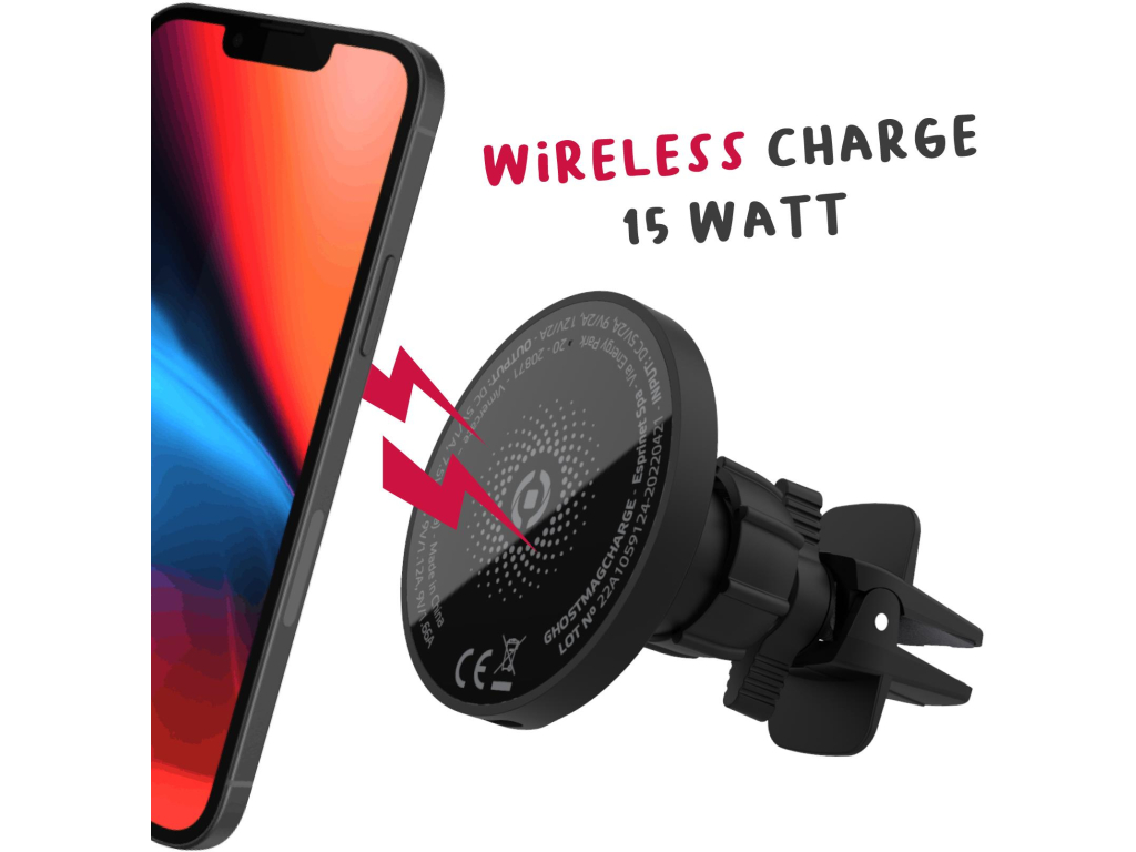 De Celly GhostMagCharge MagSafe Car Holder 15W Black is compatible met het MagSafe ecosysteem van Apple. Je iPhone en iPhone-cases klikken dus moeiteloos vast aan deze magnetische houder van Celly. De houder heeft een verstelbare clip met anti-fall systeem die er samen voor zorgen dat de houder goed vast zit aan het luchtrooster van jouw auto.