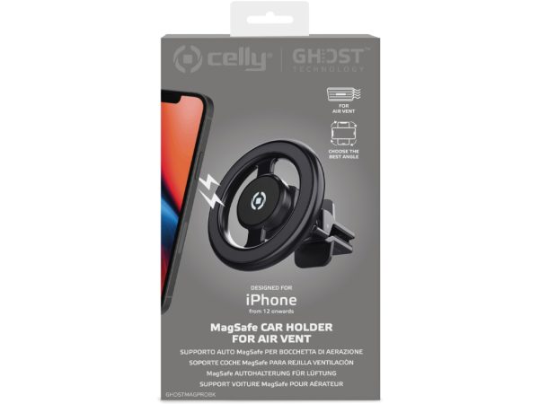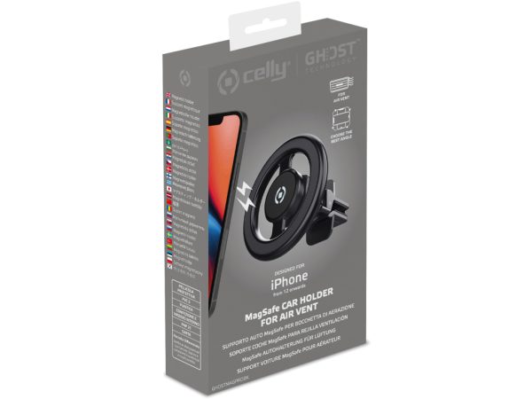De Celly GhostMagPro MagSafe Car Holder Black is compatible met het MagSafe ecosysteem van Apple. Het vernieuwde design met aluminium body garandeert betere stabiliteit en grip. Je iPhone en iPhone-cases klikken dankzij MagSafe compatibiliteit dus moeiteloos vast aan deze magnetische houder van Celly. De houder heeft een verstelbare clip met anti-fall systeem die er samen voor zorgen dat de houder goed vast zit aan het luchtrooster van jouw auto.