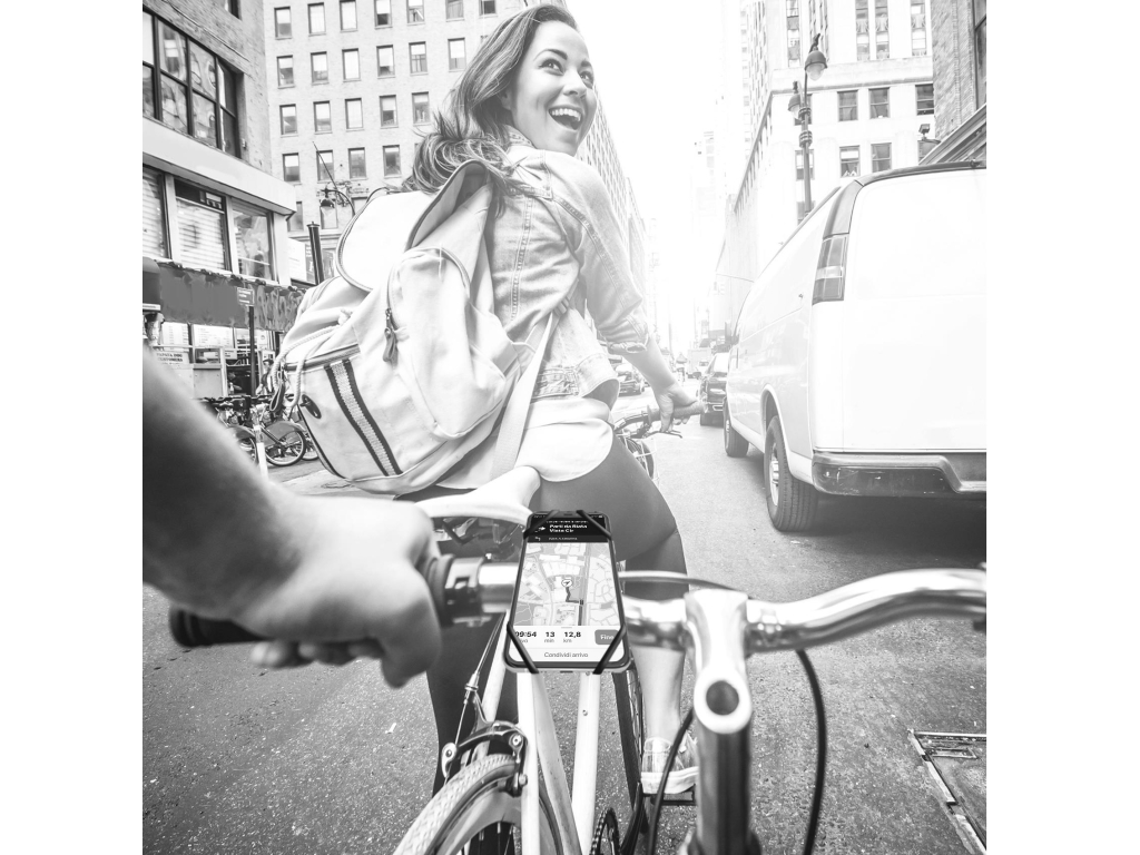 De houder is makkelijk te installeren dankzij de easy fastening system met verstelbare riem en is compatible met bijna elk soort stuur.