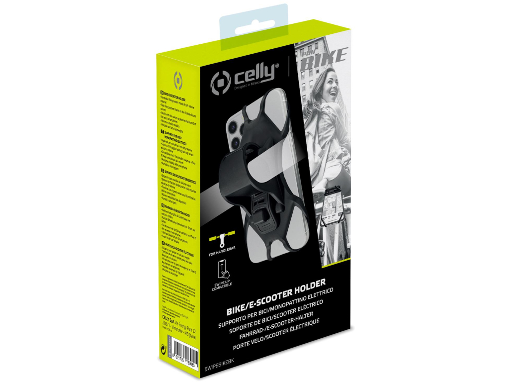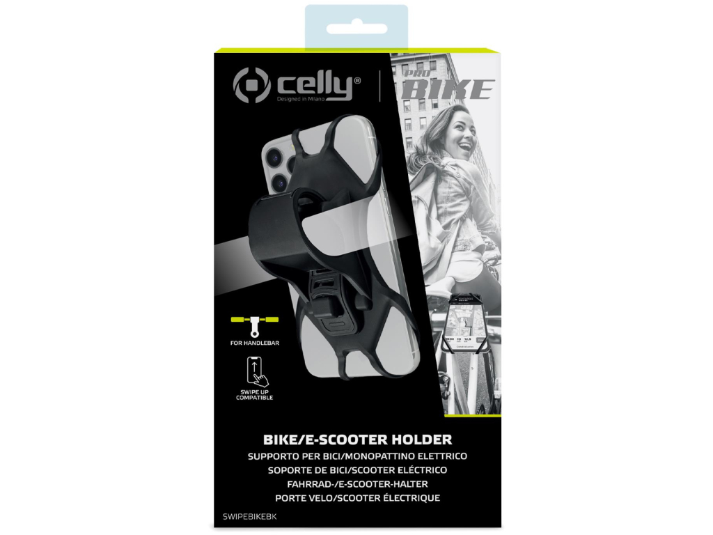 De Celly SwipeBike Universal Bike Holder Black kan je gebruiken op de meeste e-scooters en fietsen. De houder is gemaakt van flexibel soft siliconen materiaal waardoor bijna elke smartphone in de houder past.