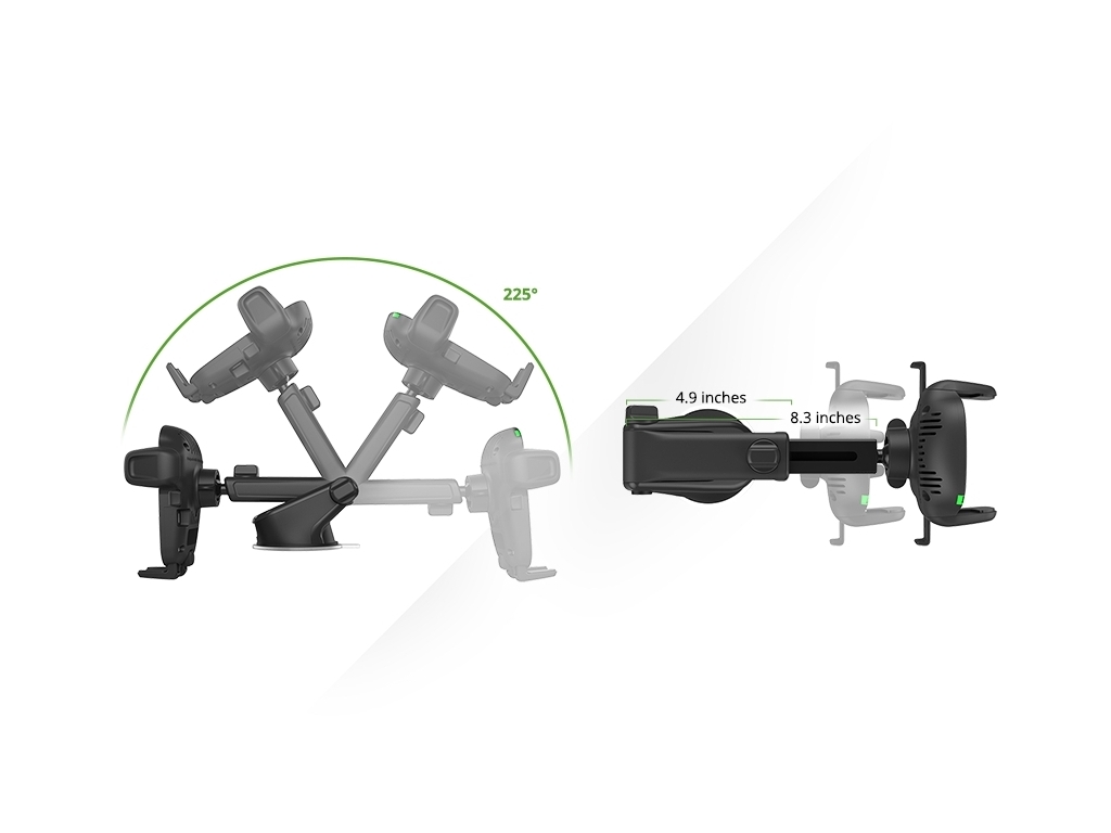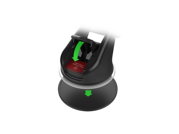 Het kogelgewricht maakt het mogelijk om de houder in bijna elke hoek te draaien en de telescopische arm zorgt ervoor dat je het toestel nog iets dichterbij kunt halen. Met een druk op 2 knoppen aan de zijkanten van de houder laten de armen het toestel los zodat je het toestel makkelijk uit de houder kunt nemen. Deze houder kan je op je dashboard of aan het raam van jouw auto bevestigen.