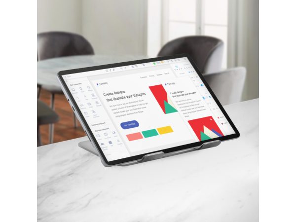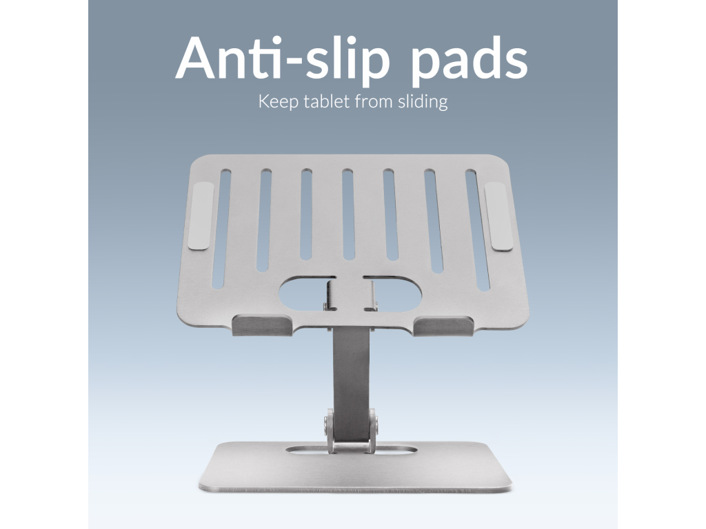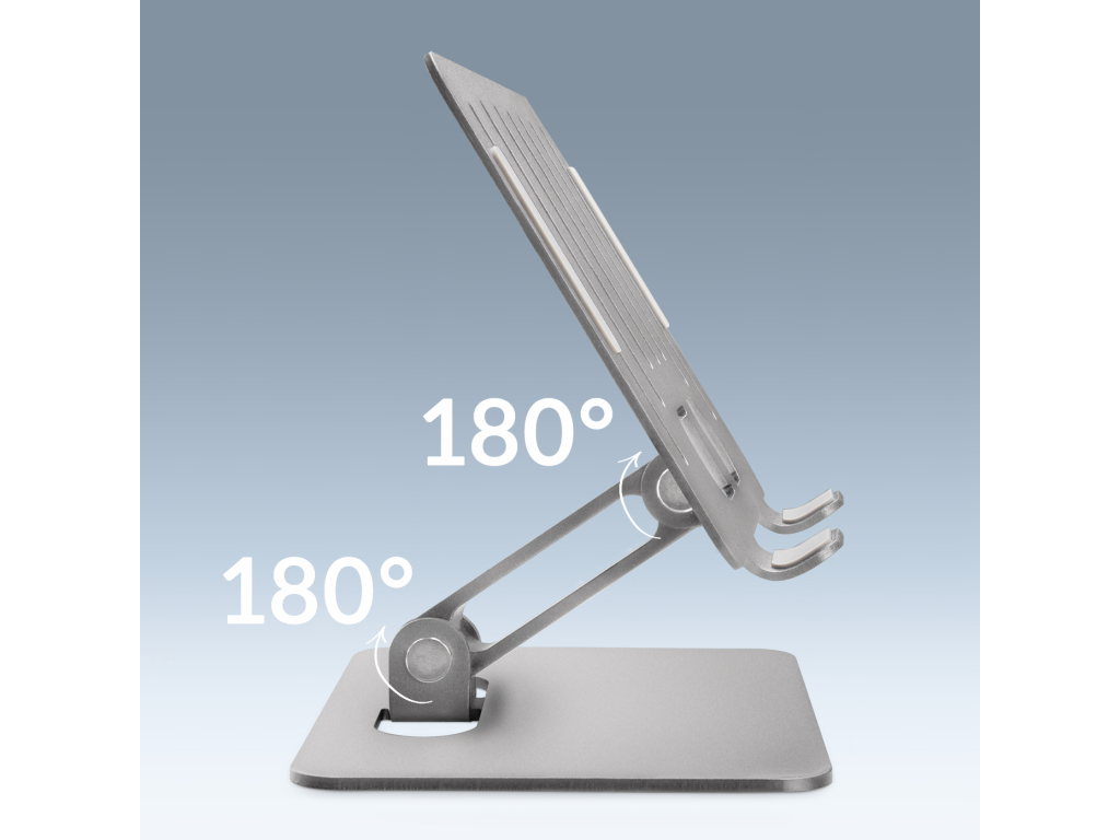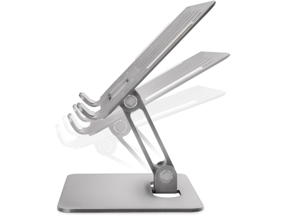Met de Mobilize Foldable Aluminium Holder heb je altijd een vaste plek voor en goed zicht op je tablet of E-reader. Dankzij de twee draaipunten is het perfect in te stellen voor de ideale kijkhoek. Of je nu een boek leest, naar je favoriete content kijkt of aan het videobellen bent, deze houder zorgt dat je het ongestoord en ergonomisch verantwoord kan doen. De op strategische plekken geplaatste antislip materiaal en aluminium frame zorgen ervoor dat de houder en jouw toestel veilig blijven staan. Het aluminium en de gleuven in het aluminium zorgen voor optimale koeling van jouw tablet of E-reader zo levert jouw apparaat altijd de maximale prestatie. Omdat de houder opvouwbaar is, is het een erg handige houder voor onderweg.