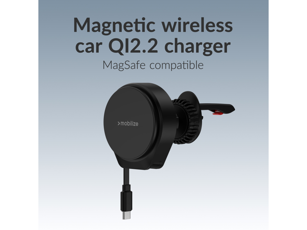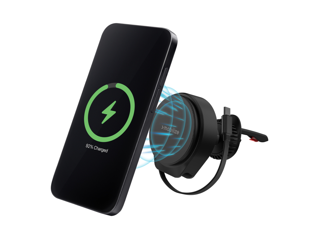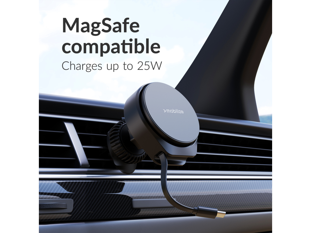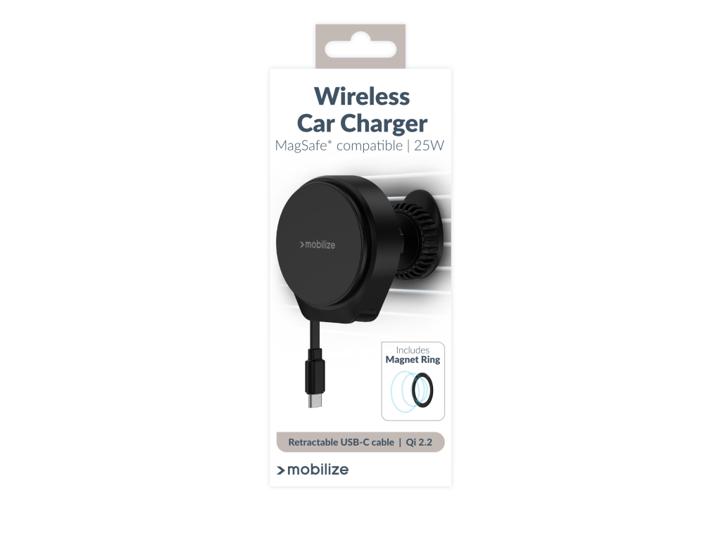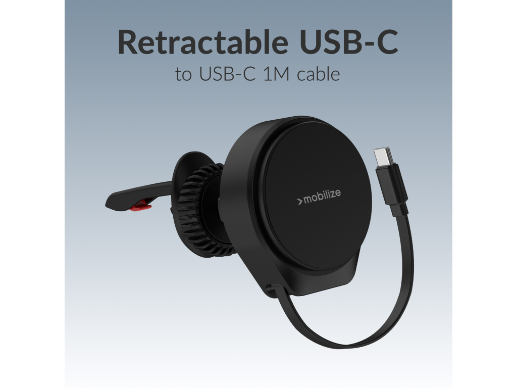 Mobilize MagSafe Compatible Car Holder/Charger 25W Qi2.2 with Retractable USB-C Cable Black
