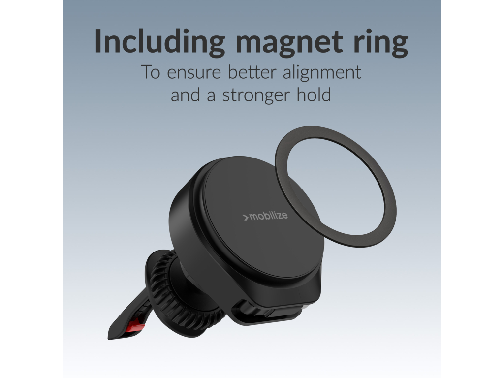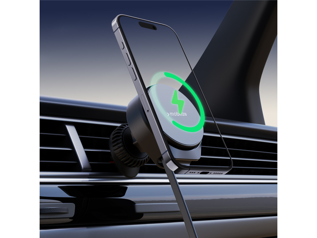 De Mobilize MagSafe Compatible Car Holder/Charger combineert naadloos gemak, stijl en functionaliteit voor een optimale rijervaring. Met de geïntegreerde magnetische draadloze lader is je smartphone altijd stevig bevestigd en direct opgeladen, zonder gedoe met kabels.