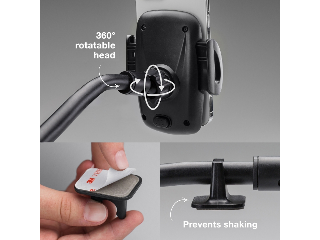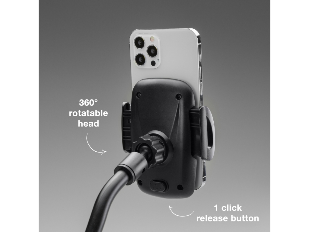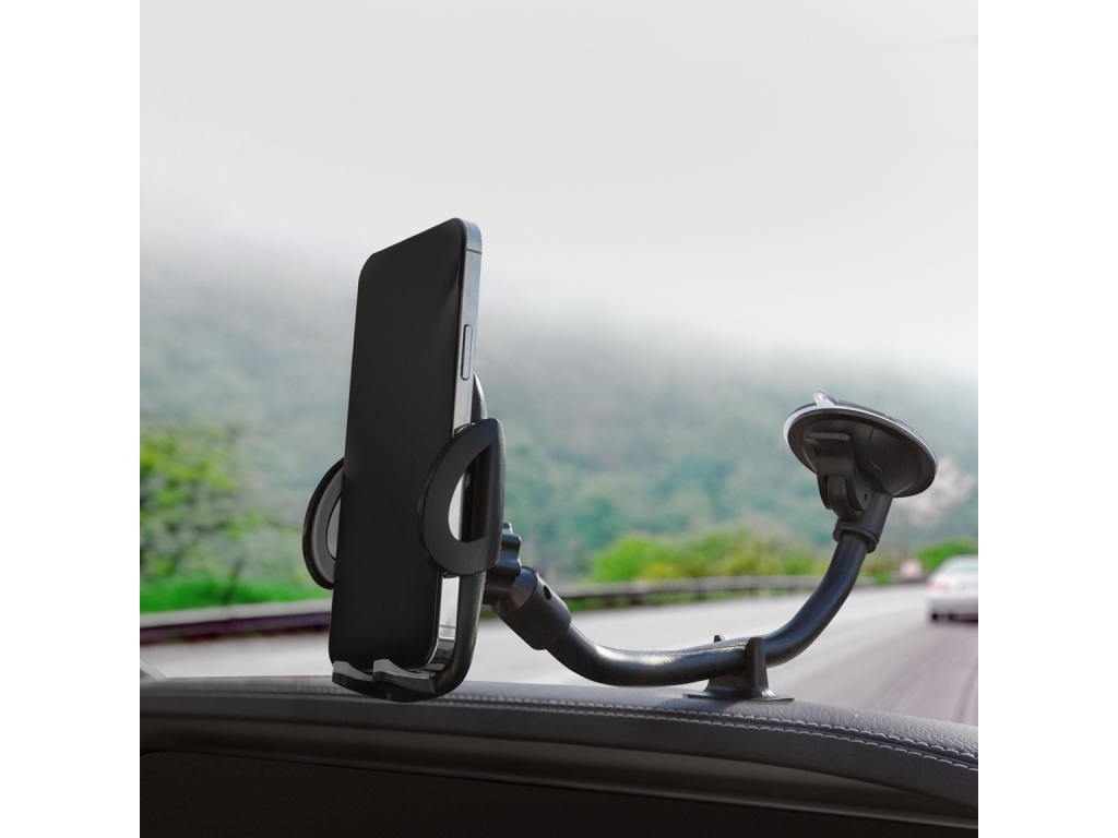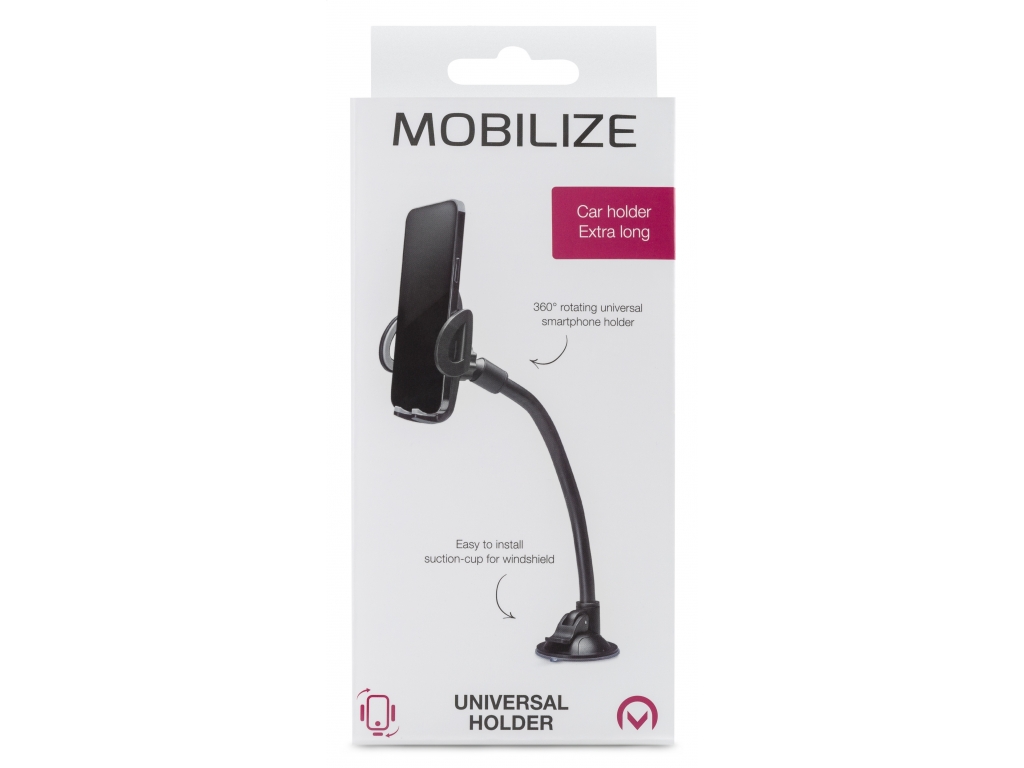 De extra lange Gooseneck houder van Mobilize heeft een flexibele lange hals die in vrijwel elke stand gezet kan worden. Enorm handig voor op de voorruit van de auto, maar ook op andere plekken zoals de keuken, wanneer je een recept wil lezen. De voet past op elke gladde, vlakke ondergrond. De telefoonhouder is 360º te draaien. Dus je kunt je telefoon zowel horizontaal als verticaal plaatsen en in elke gewenste hoek zetten.