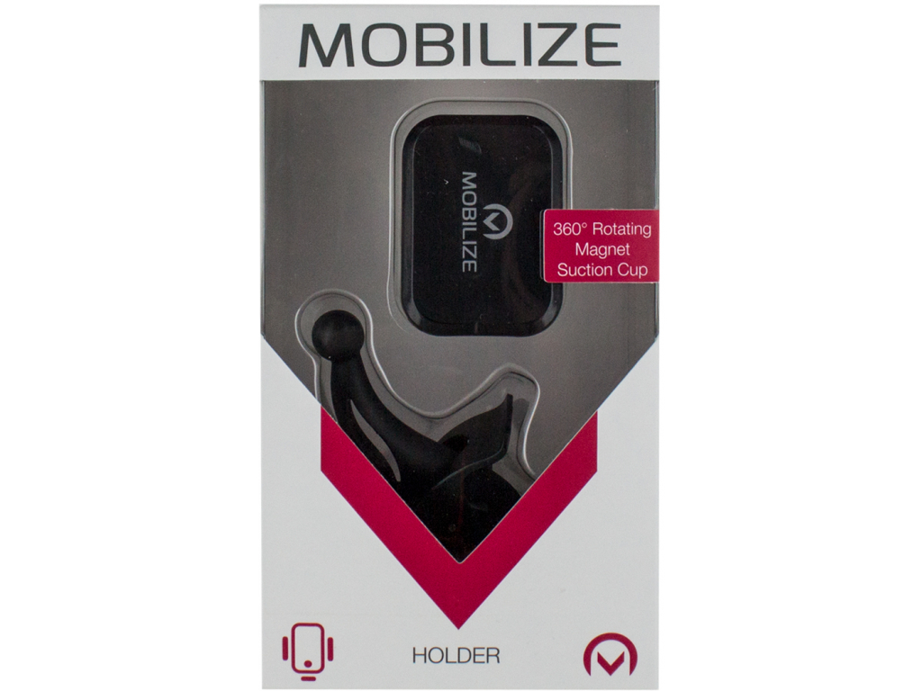 Met de universele magneet houder van Mobilize kunt u veilig de weg op en heeft u altijd uw mobiel bij de hand. Of het nu op de voorruit of op het dashboard van uw auto is of op uw bureau thuis of op kantoor, deze houder plakt op vrijwel elk glad oppervlak en blijft stevig zitten. Niet alleen heeft de houder een plakrand, maar ook een zuignap die de houder goed vast zet, maar waardoor hij ook weer makkelijk los te maken is. Door middel van een meegeleverde, ultra dunne magneet die u op uw mobiel kunt plakken bevestigt u heel gemakkelijk uw mobiel op de magnetische houder. Let wel op, wanneer u een hoesje om uw mobiel heeft dan werkt de magneet waarschijnlijk niet goed wanneer het op uw mobiel geplakt zit, tenzij u de magneet op uw hoesje plakt. De houder heeft een draaibare kop waardoor u altijd de juiste hoek kunt kiezen voor uw mobiel.