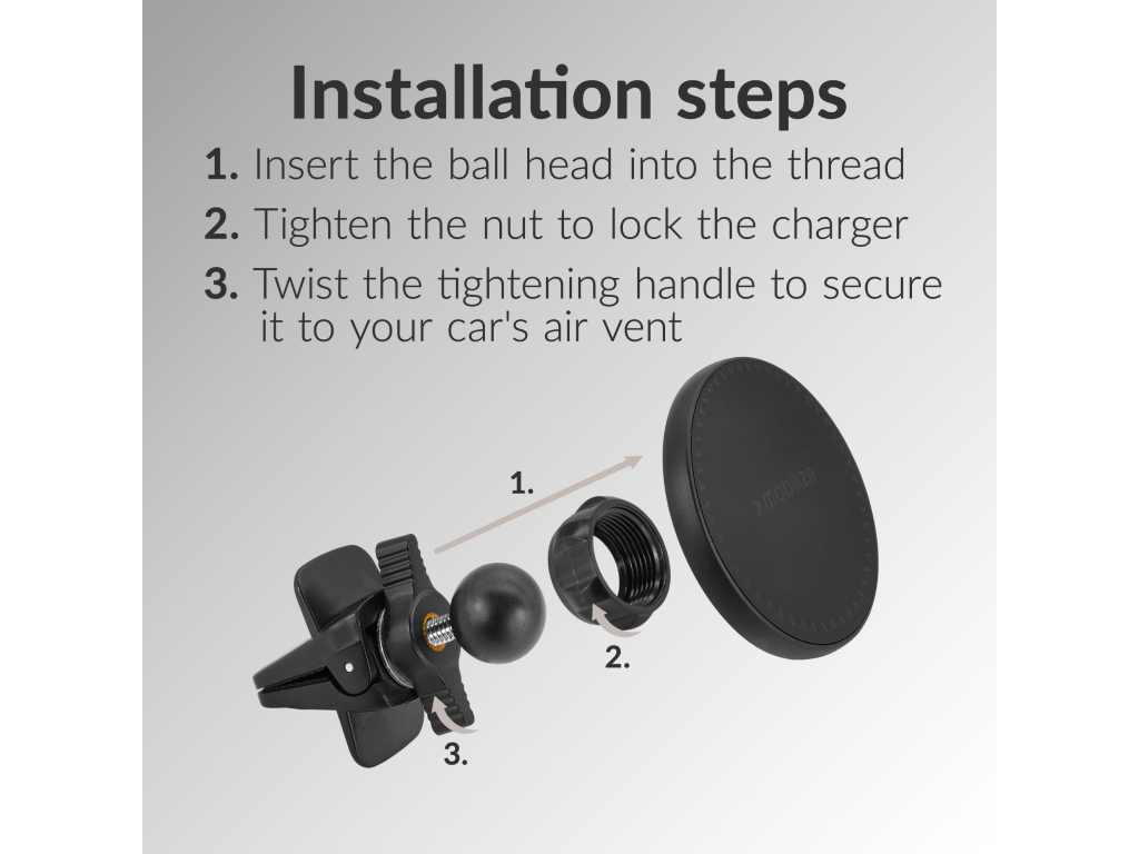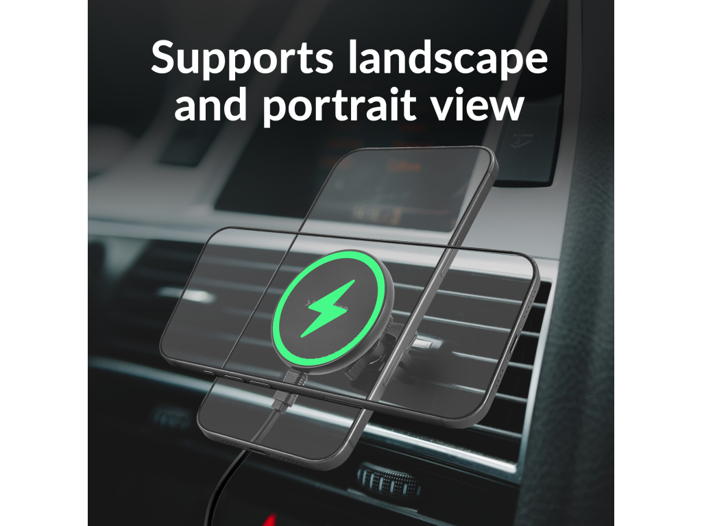 Met de Mobilize Wireless MagSafe Compatible Car Holder/Charger 5W/7.5W/10W/15W Black geniet je van een snelle, efficiënte en stijlvolle manier om jouw toestel op te laden terwijl je onderweg bent. Deze draadloze magnetische lader maakt gebruik van MagSafe® technologie, wat perfect is voor jouw Apple iPhone (12 en nieuwer) en plaats je in het luchtrooster van jouw auto.