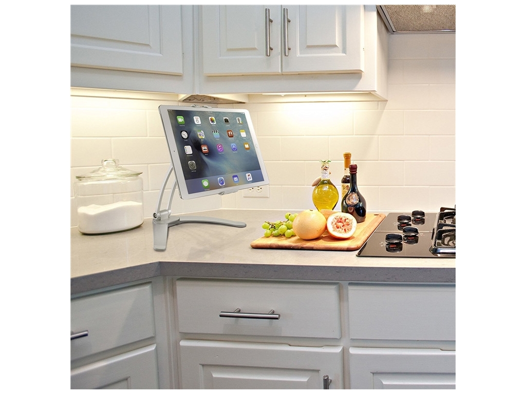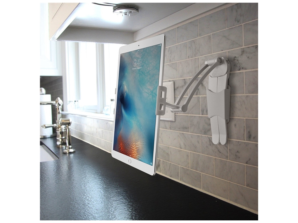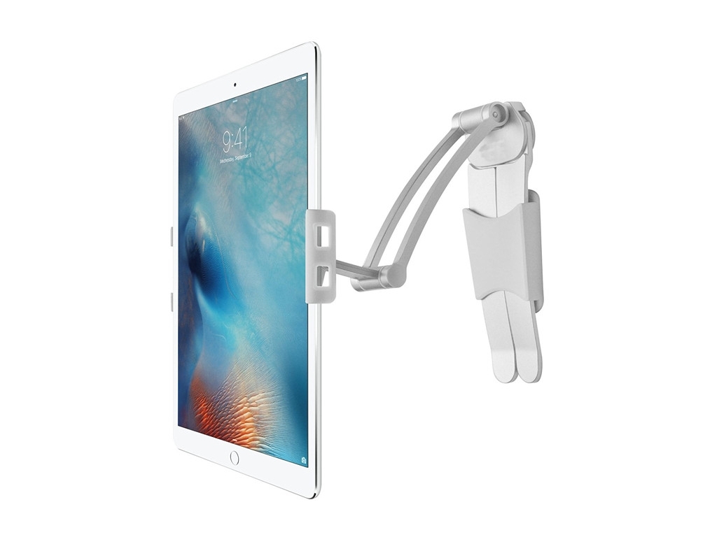 Integreer je tablet naadloos in jouw huis met deze 2-in-1 tablet stand. Deze stevige en stijlvolle aluminium standaard kan op vele plekken gemonteerd worden, bijvoorbeeld onder een keukenkastje of op een muur bij je bed. Ideaal om Youtube te volgen tijdens het koken of Netflix in je bed. Installatie is heel eenvoudig. Je kunt hem ook gewoon als houder neerzetten op je bureau of waar je maar wil.