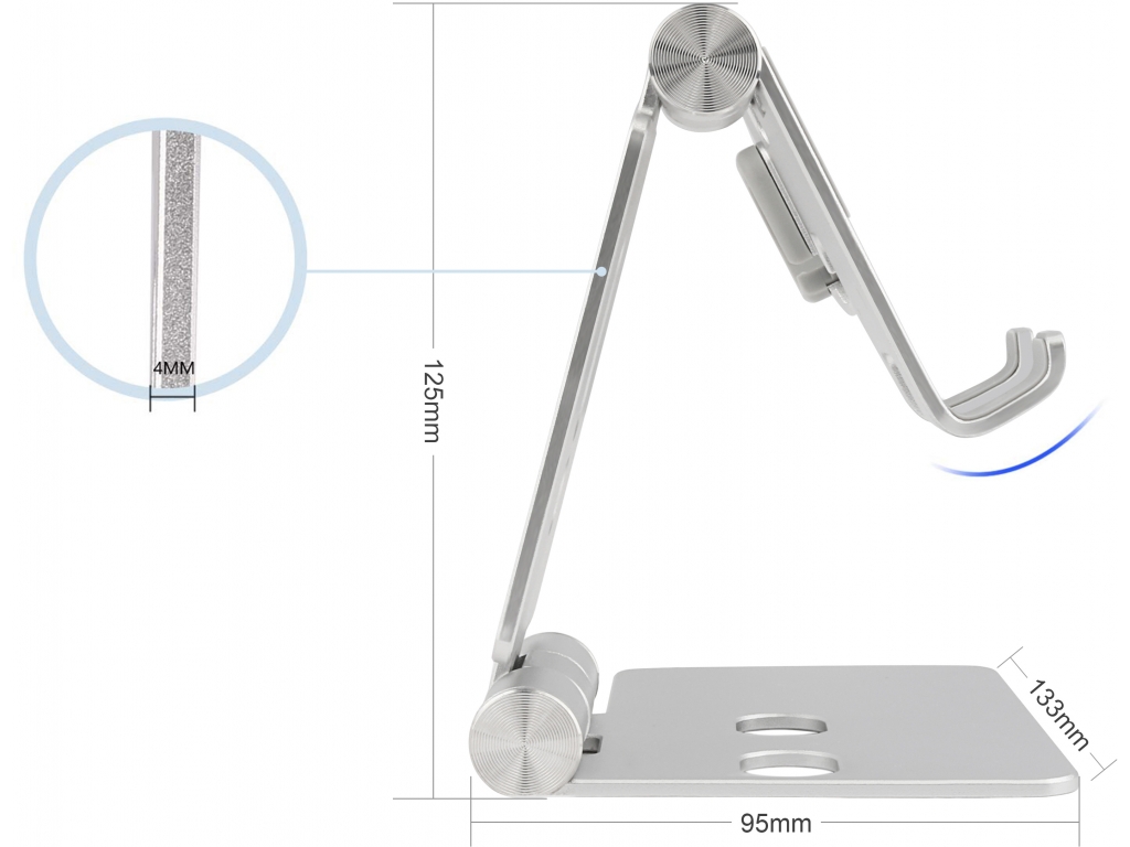 De standaard is, door 2 rotatiepunten, in vrijwel elke gewenste hoek te verstellen. Zo kun je altijd optimaal genieten van films, games of scrollen door je social media.