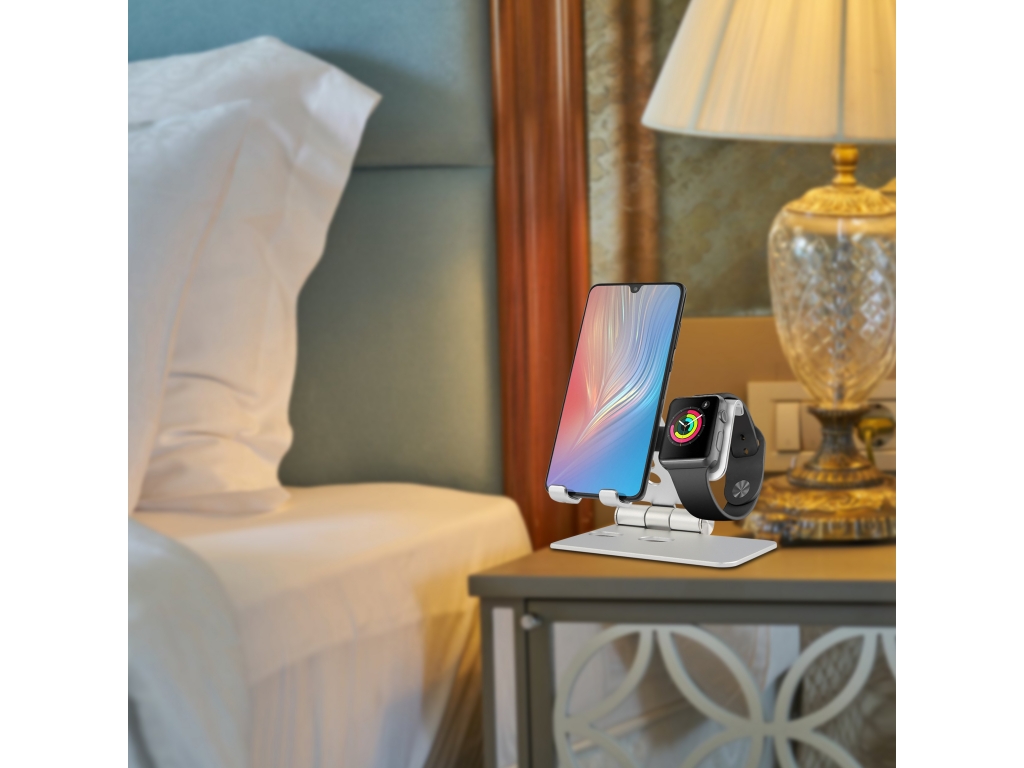 Hij is gemaakt van kwaliteitsaluminium en optimaal gebalanceerd. Dat betekend dat hij heel stevig staat en lang goed blijft. Op de juiste plekken is hij voorzien van zachte silicone pads. Deze bescherming jouw toestel en zorgen er ook voor dat ze niet zomaar wegglijden. Je kunt jouw telefoon en smartwatch gewoon opladen.