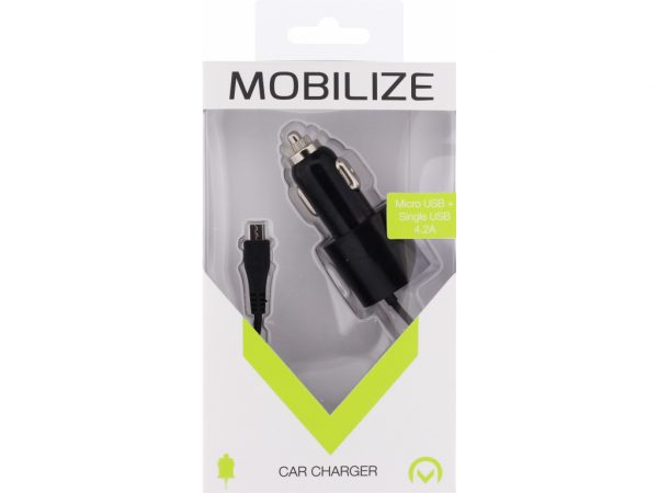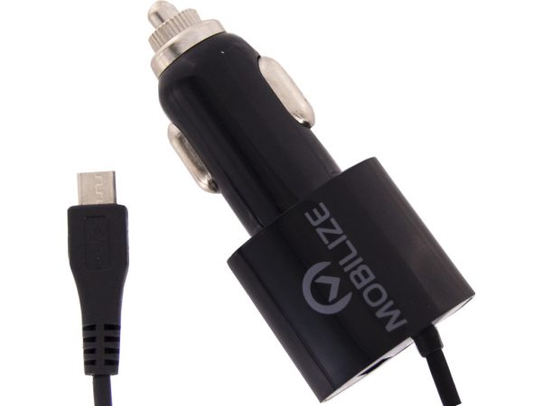 De Mobilize Car Charger is een duurzame 4.2A autolader met extra USB aansluiting. Hij beschikt over een vaste kabel met Micro-USB aansluiting én een extra USB poort. Door deze extra aansluiting heeft u de mogelijkheid om een extra USB kabel aan te sluiten en zo een tweede toestel of tablet gelijktijdig op te laden. Tussen beide aansluitingen zit een klein lampje, welke de laadstatus van de accu aangeeft. Een strakke, netjes afgewerkte, praktische lader!