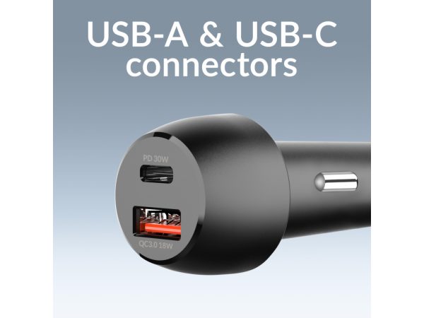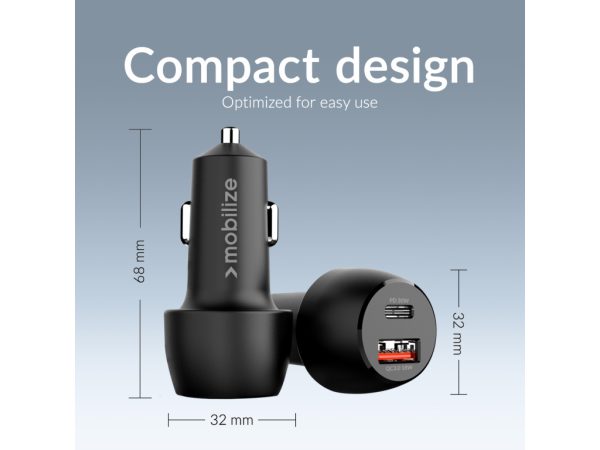 De Mobilize Car Charger is een uiterst compacte en krachtige lader voor in de auto. Met 48W PD/PPS en Quick Charge 3.0 zorgt deze lader ervoor dat jouw apparaten snel en veilig worden opgeladen. De lader beschikt over zowel een USB-A als een USB-C aansluiting, waardoor je vrijwel elke kabel kunt aansluiten. Met deze lader laad je je toestel in minder dan 30 minuten op van 0% naar 50%.
