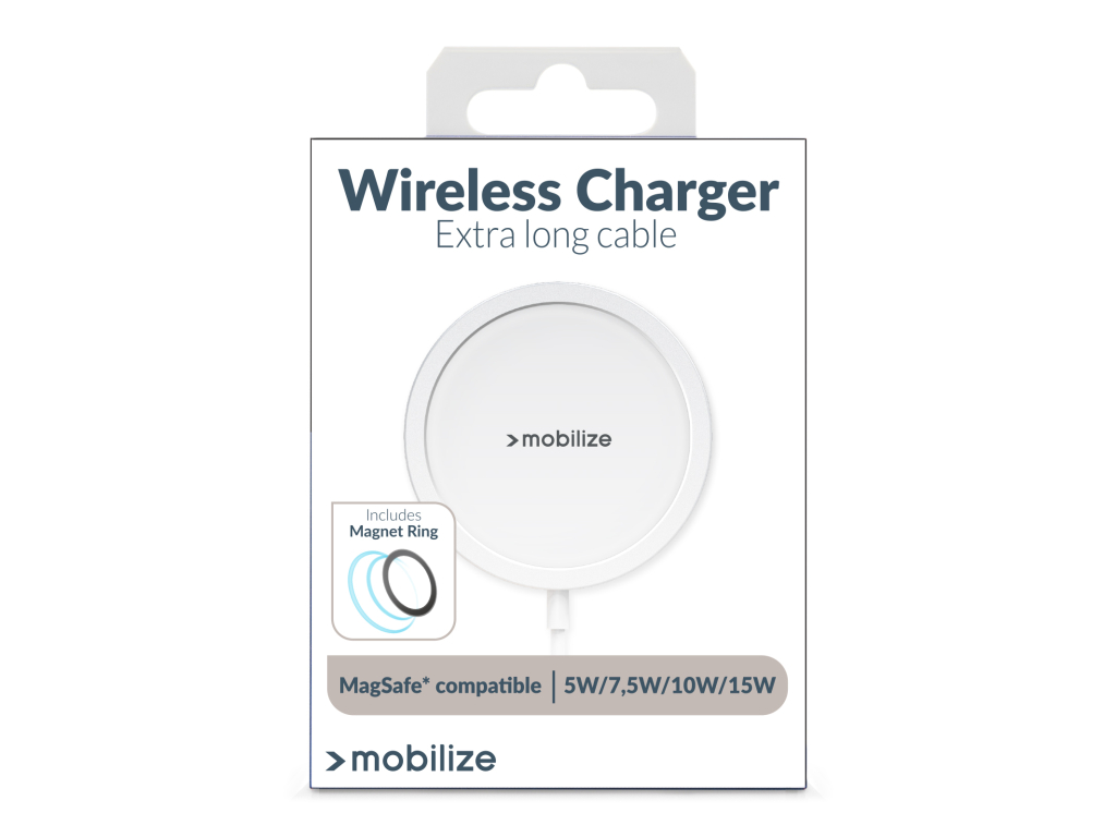 MagSafe is een nieuwe oplossing van Apple waarmee u accessoires magnetisch aan uw iPhone (12 en nieuwer) kan koppelen. De lader van Mobilize werkt perfect samen om uw telefoon snel op te laden. Wij adviseren altijd een hoesje te gebruiken met een extra magneet die het draadloze opladen met MagSafe® ondersteund, om tijdens een val schade aan uw toestel te voorkomen en ter ondersteuning van de magnetische aantrekking.