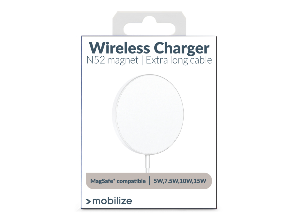 MagSafe® is een innovatieve technologie van Apple waarmee je verschillende accessoires magnetisch kan bevestigen aan jouw iPhone (12 en nieuwer). De Mobilize Aluminium Magnetic Charger is speciaal ontworpen om hiermee naadloos te integreren en zorgt voor een snelle laadtijd. Voor de beste ervaring en veiligheid raden we aan een hoesje te gebruiken met een extra magneet die MagSafe® opladen ondersteunt. Dit helpt niet alleen valschade te voorkomen, maar versterkt ook de magnetische aantrekking.