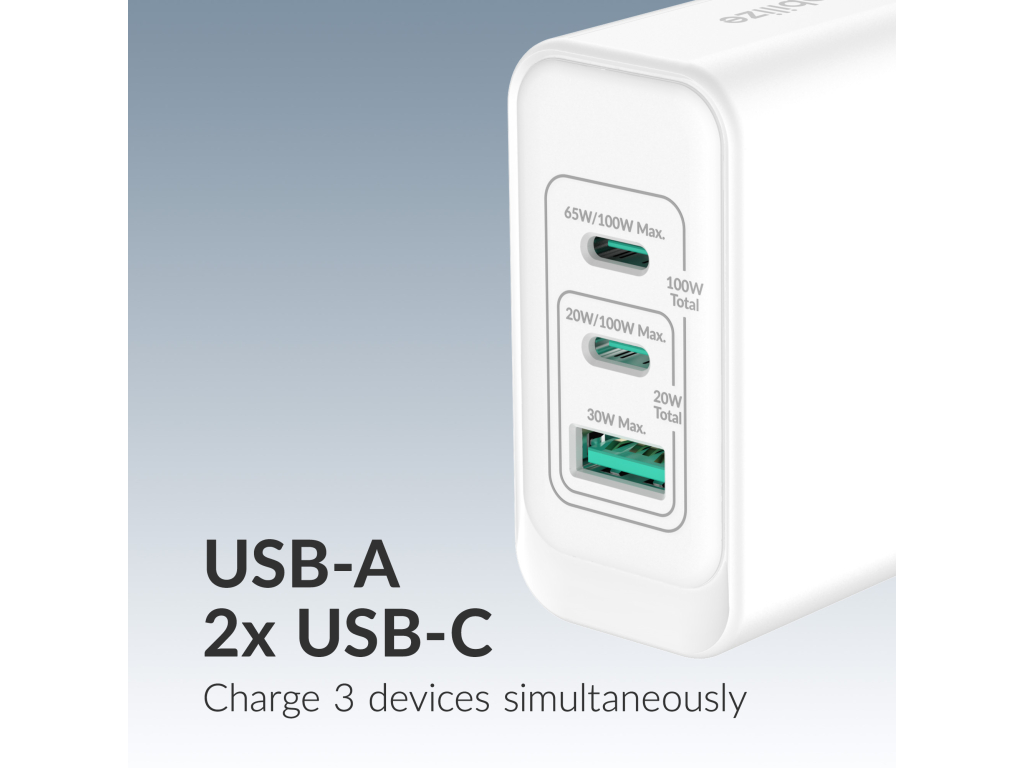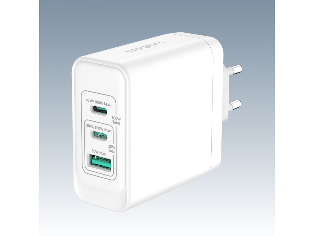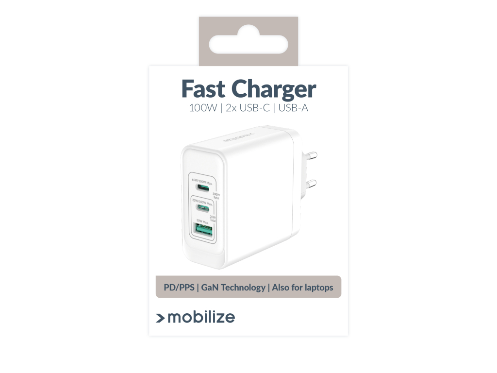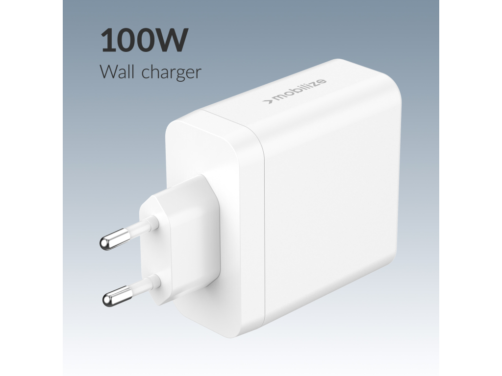 De Mobilize Wall Charger 2x USB-C + 1x USB GaN 100W met PD/PPS is een krachtige en veelzijdige oplader die ontworpen is om meerdere apparaten gelijktijdig snel en veilig op te laden. Dankzij het hoge vermogen van 100W is deze oplader niet alleen geschikt voor smartphones en tablets, maar ook voor veeleisende apparaten zoals laptops. Ideaal voor gebruik thuis, op kantoor of onderweg.