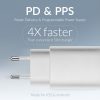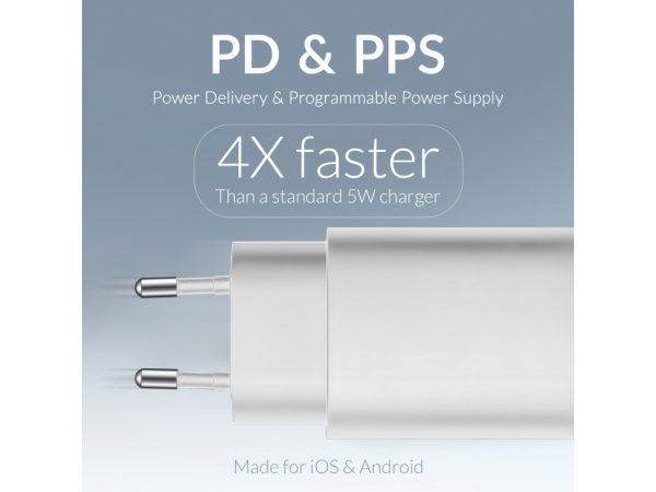 USB PPS, of "usb power delivery programmable power supply", is een programmeerbaar protocol dat de laadsnelheid aanpast aan de behoeften van je toestel. Dit betekent dat als je accu bijna leeg is en je toestel een hoge input nodig heeft, de lader de benodigde output levert. Hoe voller de accu, hoe minder input het toestel nodig heeft. Met PPS wordt je toestel zo efficiënt mogelijk opgeladen, waardoor er minder warmte wordt geproduceerd en je accu langer meegaat.