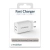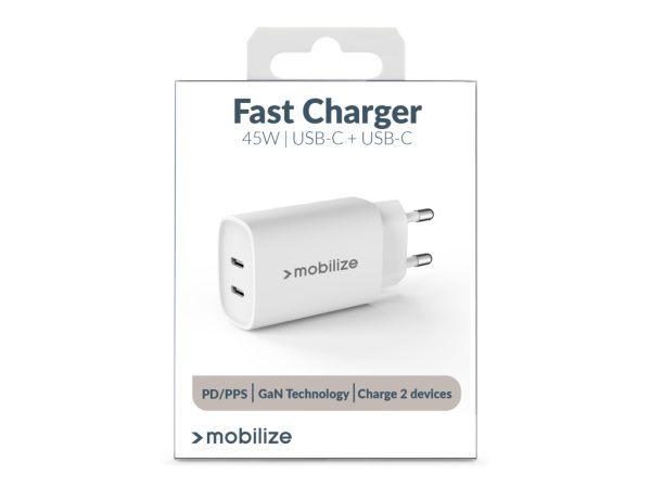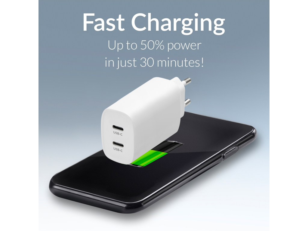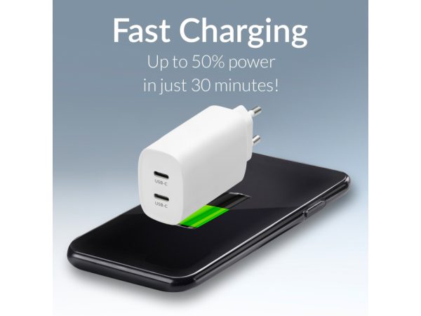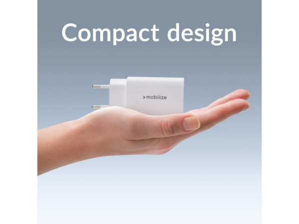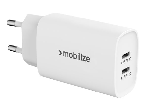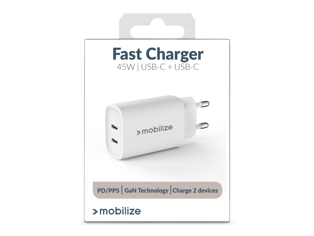 Ontmoet de Mobilize Wall Charger, jouw nieuwe, USB-C lader voor het stopcontact. Met twee USB-C poorten en een totaal vermogen van 45W, is deze lader een krachtig accessoire voor al je apparaten. Deze slimme en veilige lader maakt gebruik van PD/PPS technologie, waarmee je jouw apparaat in minder dan 30 minuten van 0% naar 50% kunt opladen.