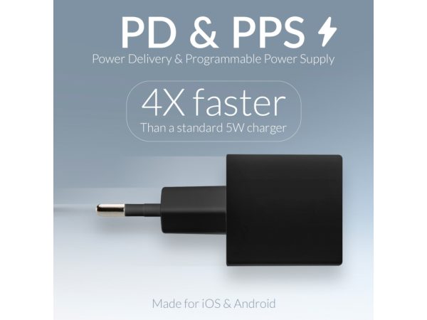 Deze compacte lader ondersteunt PD en PPS. Hiermee kan je elke iPhone of Android toestel snel en zo efficient mogelijk laden.