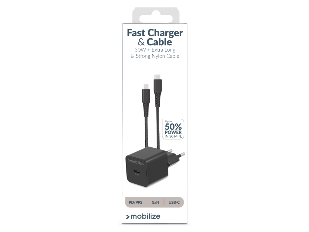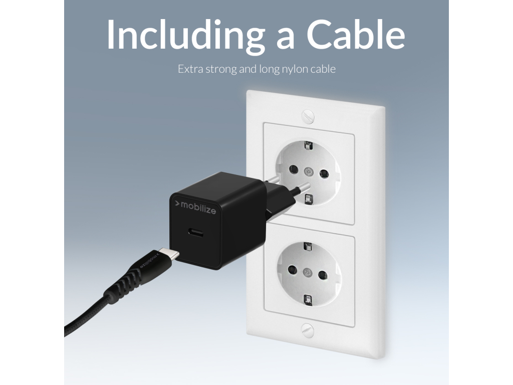 De Mobilize Wall Charger USB-C GaN 30W with PD/PPS, samen met een robuuste USB-C Nylon kabel, is de perfecte combinatie voor snelle en betrouwbare oplaadoplossingen voor je apparaten. Het is de ideale set voor iedereen die op zoek is naar een snelle, efficiënte en betrouwbare laadoplossing. Deze set biedt alles wat je nodig hebt om je apparaten snel en veilig op te laden.