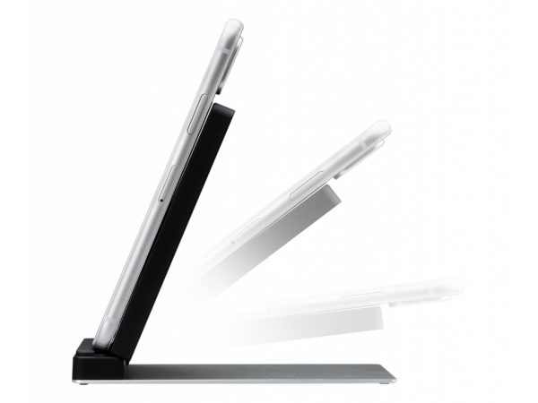 De draadloze Qi desktop lader combineert efficiënt draadloos opladen met een mooi design. Dus nooit meer gedoe met kabeltjes én een lader die mooi staat op uw bureau of nachtkastje. Dankzij de ingebouwde Qi technologie begint uw mobiel met opladen op het moment dat u hem op de lader legt. (alleen wanneer uw mobiel geschikt is voor QI). Dankzij het anti-slip oppervlak zal uw mobiel niet van de lader glijden. U kunt de Qi lader plat gebruiken, maar ook in een handige schuine gebruikstand zodat u nooit een berichtje of melding hoeft te missen.