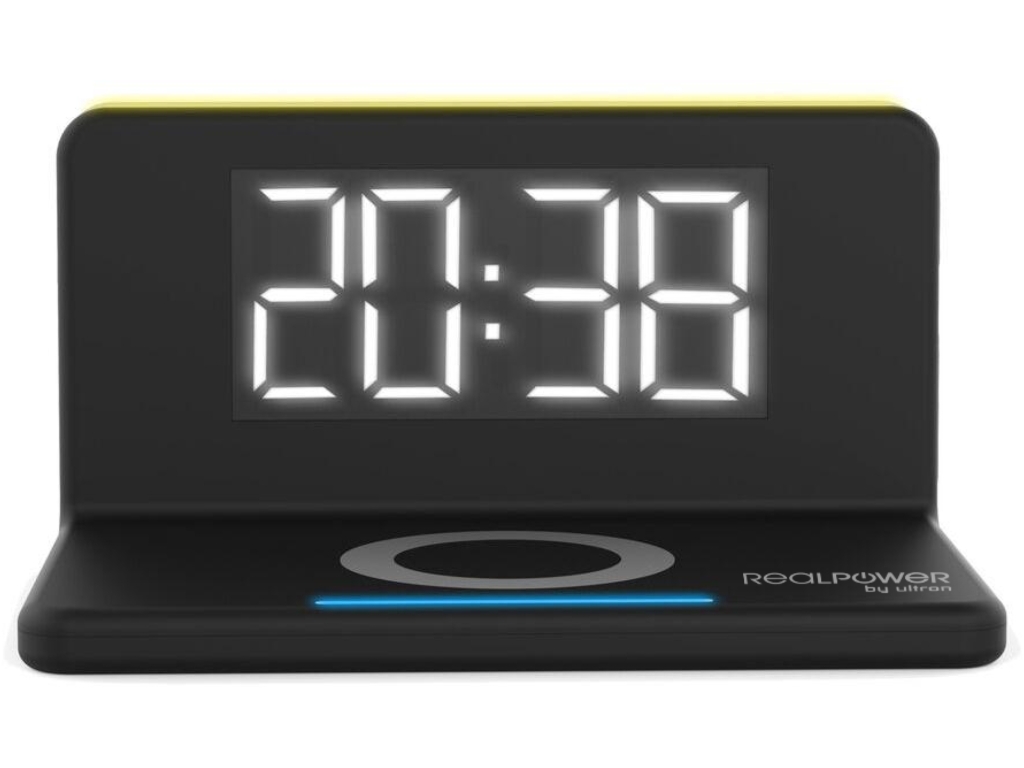 De RealPower ChargeAIR Clock is een: alarmklok, LED-lamp en wireless charger in één! Het minimalistich ontwerp zorgt voor rust op je nachtkastje. Terwijl de alarmklok jou aangeeft hoe laat het is, laadt het jouw toestel op. Mocht je midden in de nacht wat licht nodig hebben om de kamer te verlichten dan druk je op de knop en het licht boven op de alarmklok springt aan. In totaal zijn er 3 verschillende lichtsterktes. Het licht wordt feller wanneer je nogmaals op het lichtknopje drukt. Druk je een vierde keer op de knop dan schakelt het licht uit. Ook de klok zelf kan je op dezelfde manier in 3 verschillende lichtsterktes instellen zodat het niet teveel stoort tijdens het slapen.