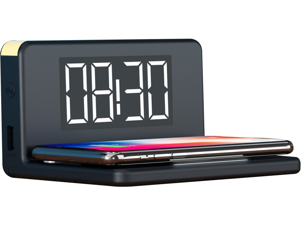 Jouw toestel leg je op de voet voor de klok dat dus eigenlijk een charging pad is. Afhankelijk van welk toestel jij op de charging pad legt bepaalt het apparaat met hoeveel Watt het toestel wordt geladen tot een maximum van 10W. Naast al deze functies heeft de klok ook een extra USB-poort waar je een tweede toestel, smartwatch of Bluetooth headset op kan aansluiten om te laden.