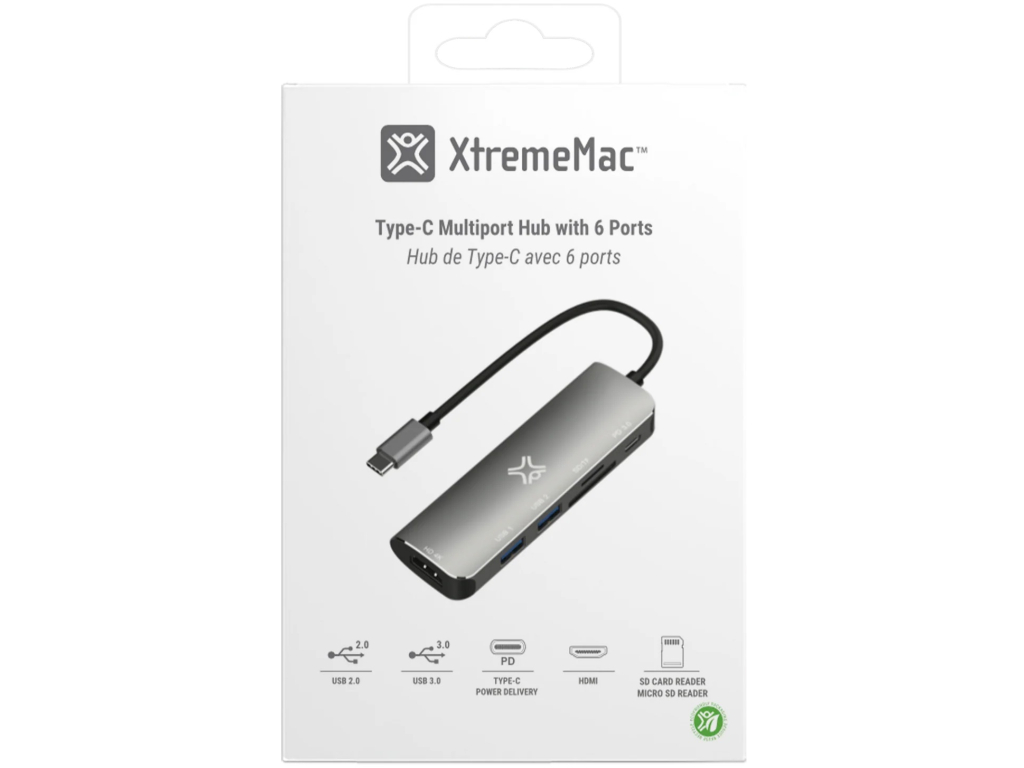 Met de XtremeMac 6-ports USB-C hub gebruik je de PD-poort op je MacBook of andere laptop met USB-C-poort voor snel opladen en gegevensoverdracht. Terwijl je daarnaast de volgende dingen toevoegt: USB 3.0, SD/MSD kaartlezer, 4k HDMI en Type-C poorten.