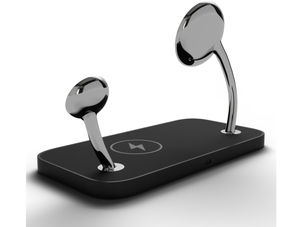 Plaats simpelweg je iPhone op de magnetische oplaadmodule aan de linkerkant en geniet van een supersnelle laadsnelheid van 15W. Doe hetzelfde met je Apple Watch op de tweede module aan de rechterkant en ervaar ook voor dit apparaat de kracht van snel opladen. Tenslotte, leg je AirPods hoesje in het midden van het docking station, waar je nog een 5W draadloze oplaadplaat vindt.