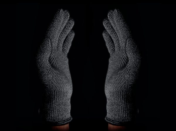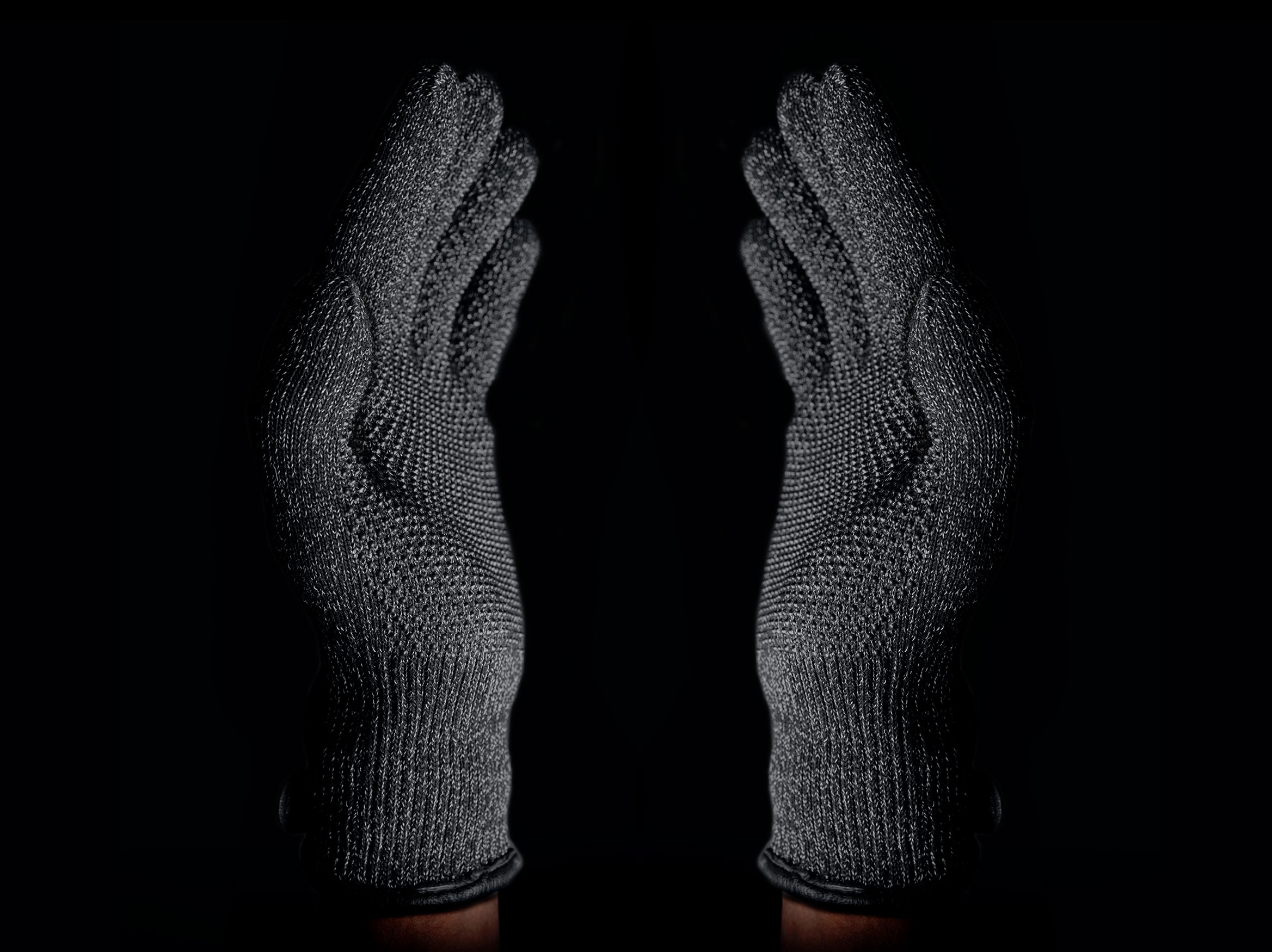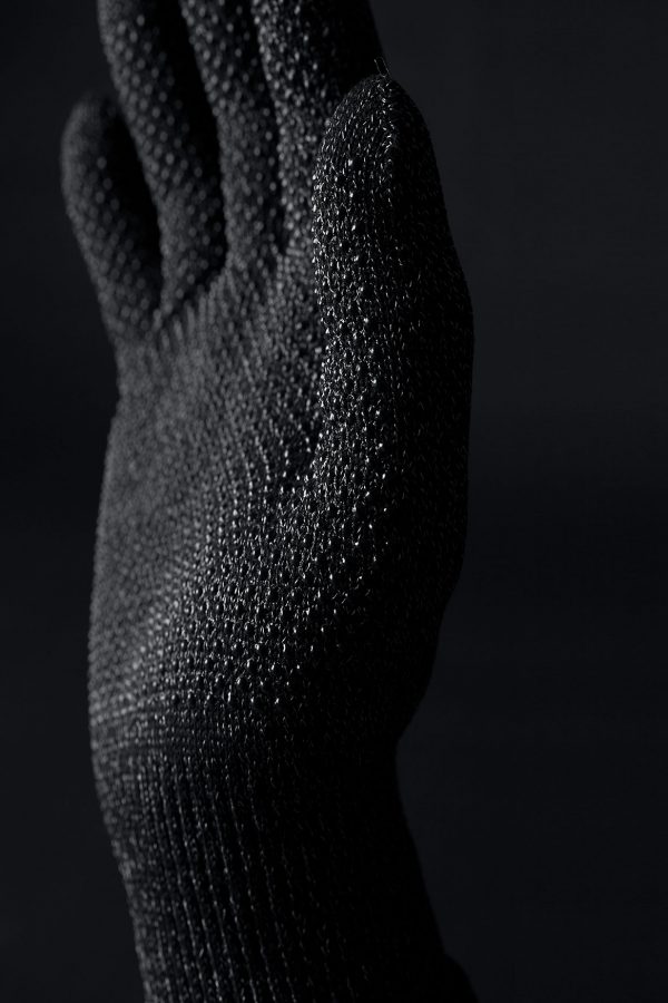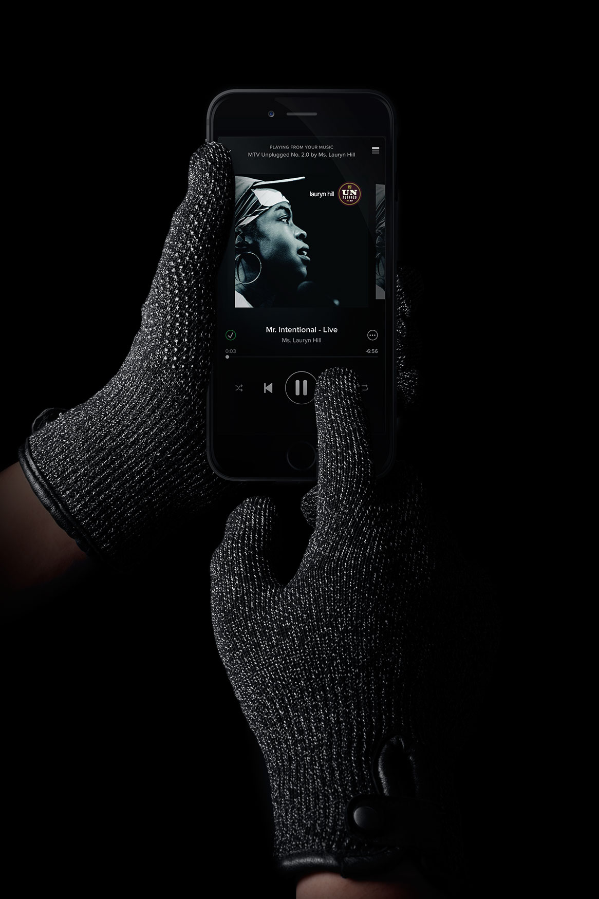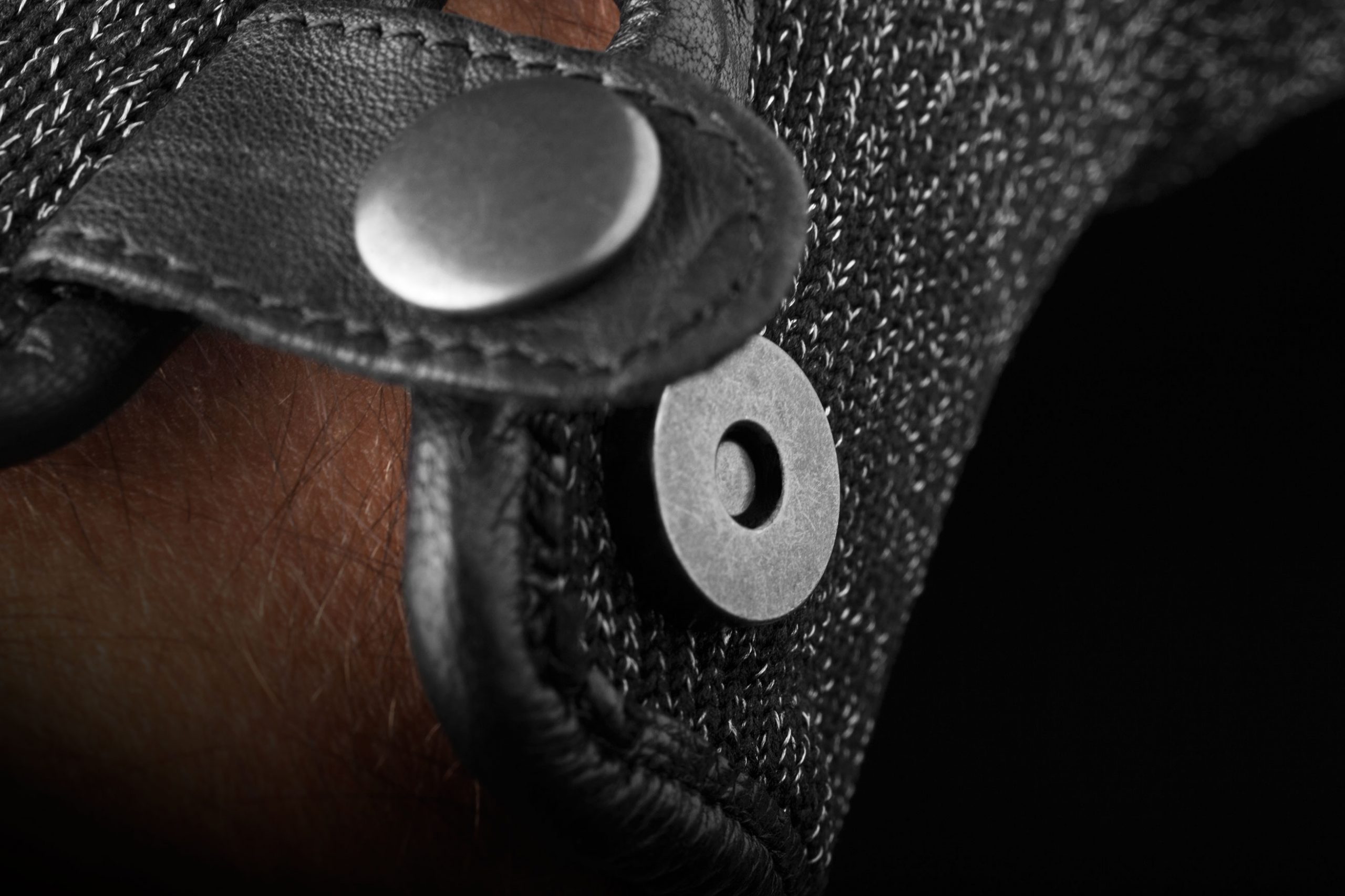 Materiaal: silver-coated nylon fiber, fleece, leder
