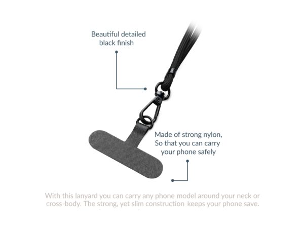 De pad, gemaakt van nylon, plaats je eenvoudig in je favoriete case. Het oog aan de onderzijde van de pad haal je door de uitsparing van de laadconnector om vervolgens daarna jouw toestel in de case te plaatsen. De lanyard, die in diverse kleuren verkrijgbaar is, heeft een stevige metalen karabijn die je door het oog van de pad kan halen. Zo heb jij jouw toestel altijd bij je, heb je het ook snel bij de hand en wanneer jij je toestel niet nodig hebt heb je beide handen helemaal vrij.