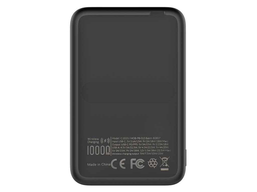 Ontmoet de Mobilize Magnetic Wireless Magsafe Compatible PD Power Bank met een indrukwekkende capaciteit van 10000mAh en max output van 15W draadloos en 20W bedraad. Deze geavanceerde powerbank, in een slank ontwerp, bied je een betrouwbare en draadloze lading voor al je Magsafe-compatibele apparaten en andere smartphones die draadloos laden ondersteunen.