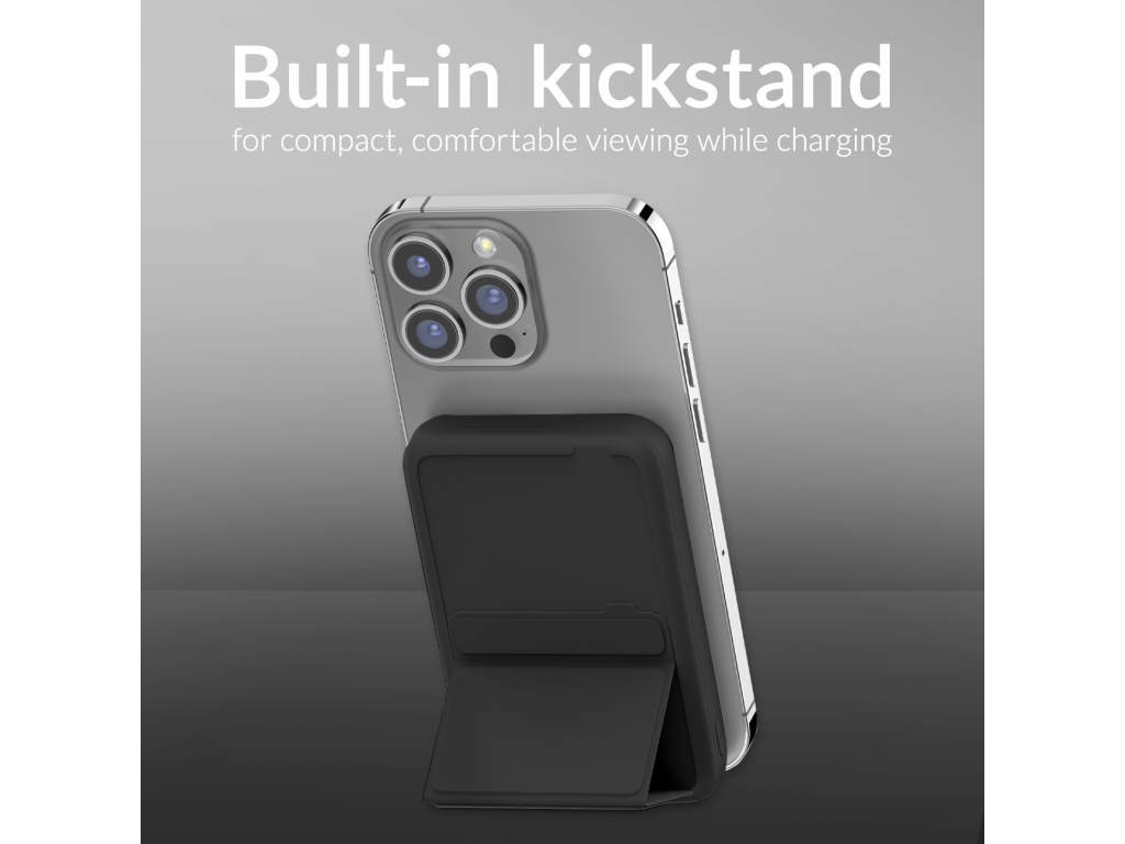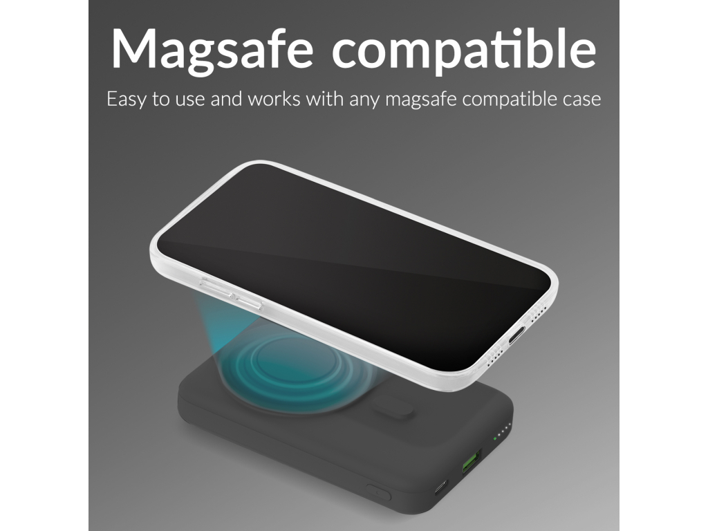 De powerbank maakt gebruik van magnetische Magsafe-technologie, waardoor je je apparaten moeiteloos kunt aan- en loskoppelen. Met een vermogen van 15W kun je erop vertrouwen dat je apparaten snel en efficiënt worden opgeladen. De power bank beschikt over een ingebouwde stand, waardoor je tijdens het opladen handsfree kunt genieten van jouw favoriete content.