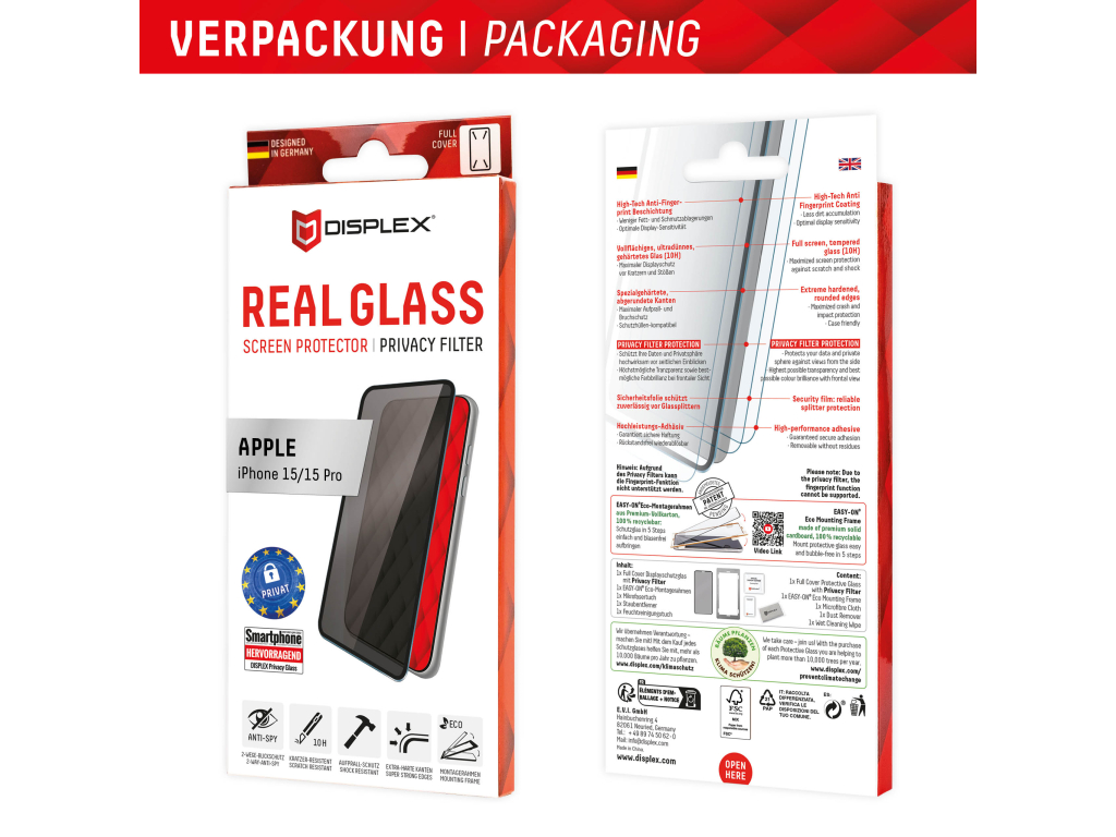 DISPLEX Privacy Glass FC Apple iPhone 15/15 Pro