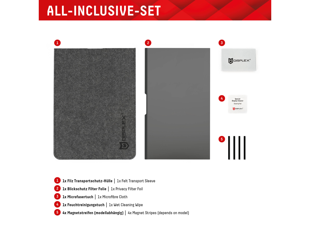 Wil je eigen gegevens en gevoelige bedrijfsinformatie beschermen tegen nieuwsgierige ogen? Deze Displex Privacy Safe screenprotectors voor laptops en MacBooks en beschermen jouw gegevens door het zicht op je scherm te blokkeren tot 30 graden aan weerszijden van het midden van de laptop. Dit helpt voorkomen dat anderen je vertrouwelijke informatie zien en houdt nieuwsgierige ogen weg van jouw privébestanden, wachtwoorden of inloggegevens wanneer je je in openbare ruimtes bevindt zoals luchthavens, hotels en cafés. Deze screenprotectors zijn eenvoudig te installeren en te verwijderen dankzij de naadloze magnetische bevestiging, zodat ze kunnen worden gebruikt wanneer je ze het meest nodig hebt.