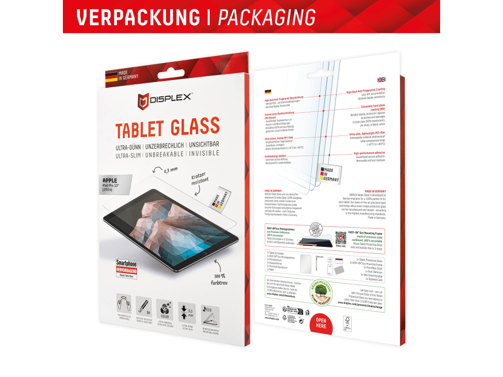 Tablet Glass (9H), onbreekbaar, ultraslank, onzichtbaar, met EASY-ON® Eco Montageframe