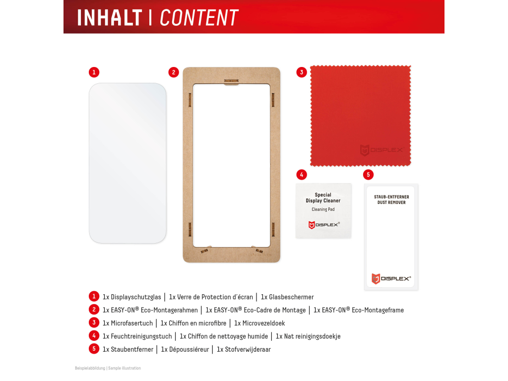 Ons Displex beschermglas is tot op 5/100 mm nauwkeurig afgestemd op de contouren van de smartphone en past daardoor perfect. Bovendien is het glas met slechts 0,3 mm ultradun. Hierdoor kunnen alle standaardformaat beschermhoesjes probleemloos samen met het glas worden gebruikt. Zo wordt je smartphone rondom optimaal beschermd – door de combinatie van het Displex Gehard Glas en je favoriete hoesje.