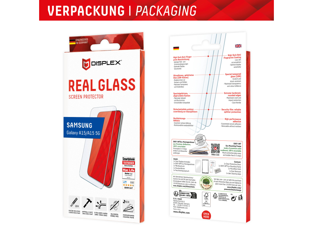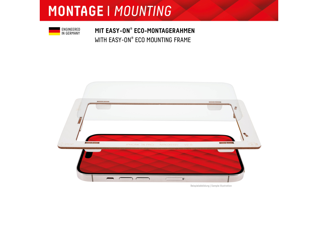 Dankzij het EASY-ON® Eco Montageframe en de meegeleverde videotutorials breng je het geharde glas razendsnel, eenvoudig en precies aan. Het frame is gemaakt van hoogwaardig, recyclebaar karton en is daarmee niet alleen duurzaam, maar ook volledig milieuvriendelijk.