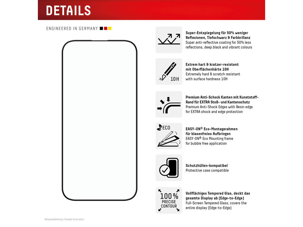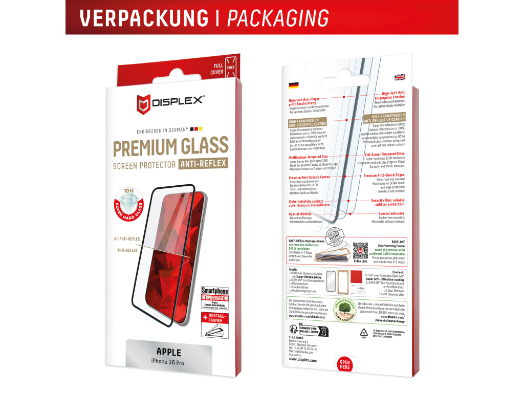 In tegenstelling tot de zogenaamde 2D-beschermglazen bedekken de Displex Full Cover beschermglazen niet alleen het actieve schermgedeelte, maar het volledige display. Dit zorgt voor optimale bescherming van het hele scherm en een verbeterde gebruikerservaring: maximale bescherming zonder storende randen.
