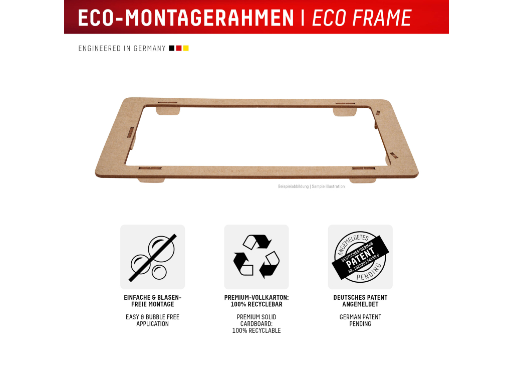 Met het EASY-ON® Eco Montageframe en de begeleidende videotutorials breng je het geharde glas razendsnel, eenvoudig en precies aan. Het montageframe is gemaakt van hoogwaardig stevig karton en is daardoor niet alleen duurzaam, maar ook 100% recyclebaar. Het resultaat mag er zijn: geen scheve plaatsing, geen bedekte openingen voor microfoons of luidsprekers, en vooral géén luchtbellen onder het glas.