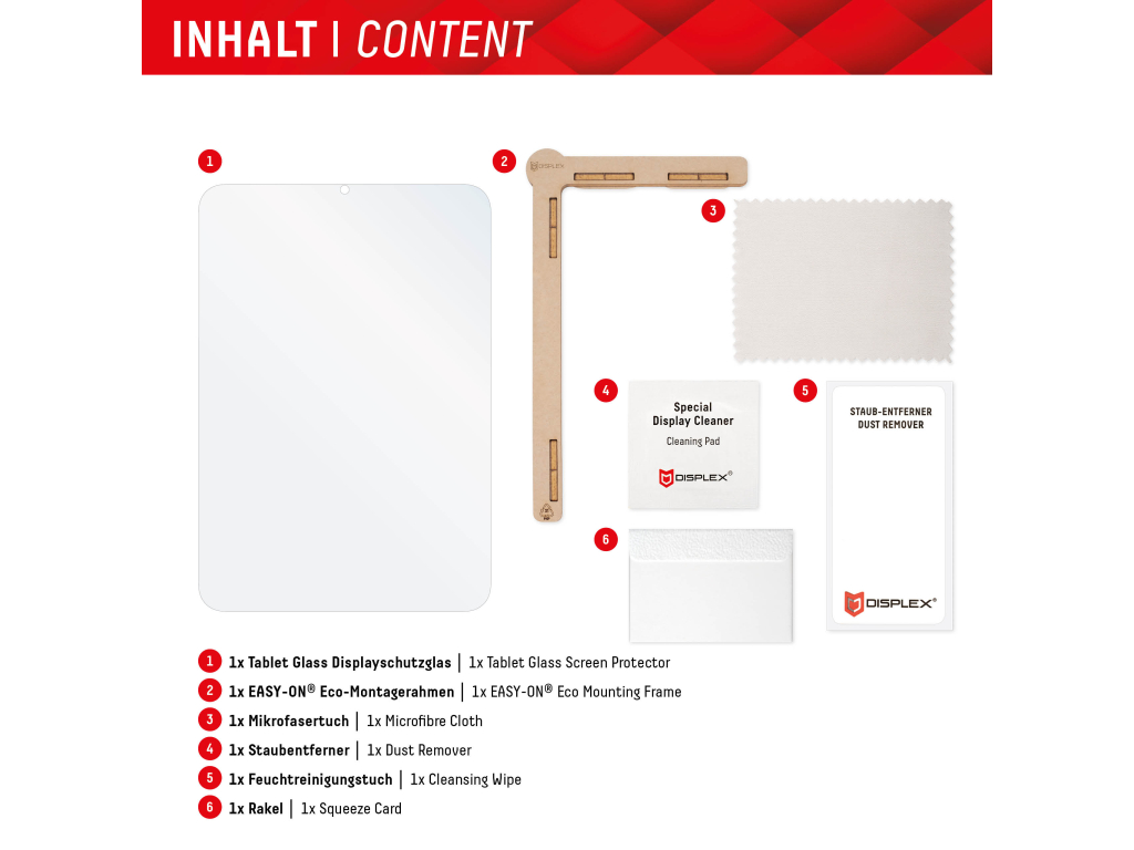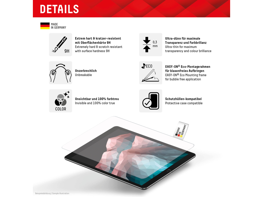 Tablet Glass (9H), onbreekbaar, ultraslank, onzichtbaar, met EASY-ON® Eco Montageframe