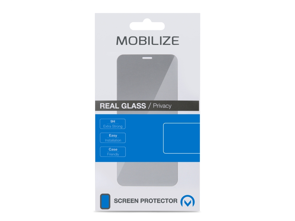 De Mobilize Privacy Glass Screen Protector biedt naast optimale bescherming van je beeldscherm tegen krassen, stoten en vallen nu ook bescherming tegen ongewenste blikken van anderen. Met deze screen protector zorg jij ervoor dat anderen (vanaf 30º kijkhoek) niet mee kunnen kijken op jouw display zodat gevoelige informatie die niet bestemd is voor andermans ogen echt alleen voor jou zichtbaar blijft. Deze Screen Protector is gemaakt van echt glas dat op een speciale manier is gehard. Hij is slechts 0,3 mm dun en heeft daardoor geen negatieve invloed op uw touchscreen. Met zijn afgeronde randen valt de Screen Protector nauwelijks op en stoort hij niet tijdens het gebruik. Deze screen protector is gemaakt van echt glas van 9H kwaliteit. Dat wil zeggen dat het opgewassen is tegen bijna alle materialen en krasvrij blijft.
