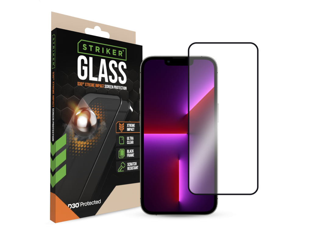 Striker D3O Xtreme Impact Glass Screen Protector – Black Frame – Apple iPhone 14 Pro/15/16