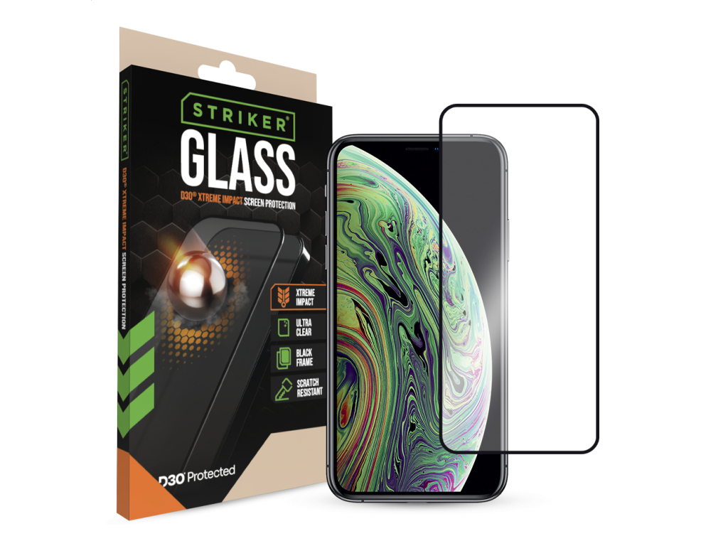 Striker D3O Xtreme Impact Glass Screen Protector – Black Frame – Apple iPhone XR/11